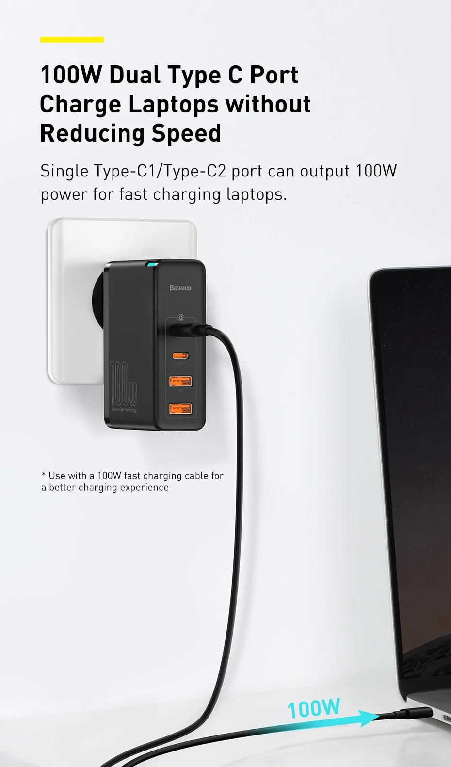 Зарядное устройство Baseus 100 Вт с портом USB Type-C и поддержкой быстрой зарядки
