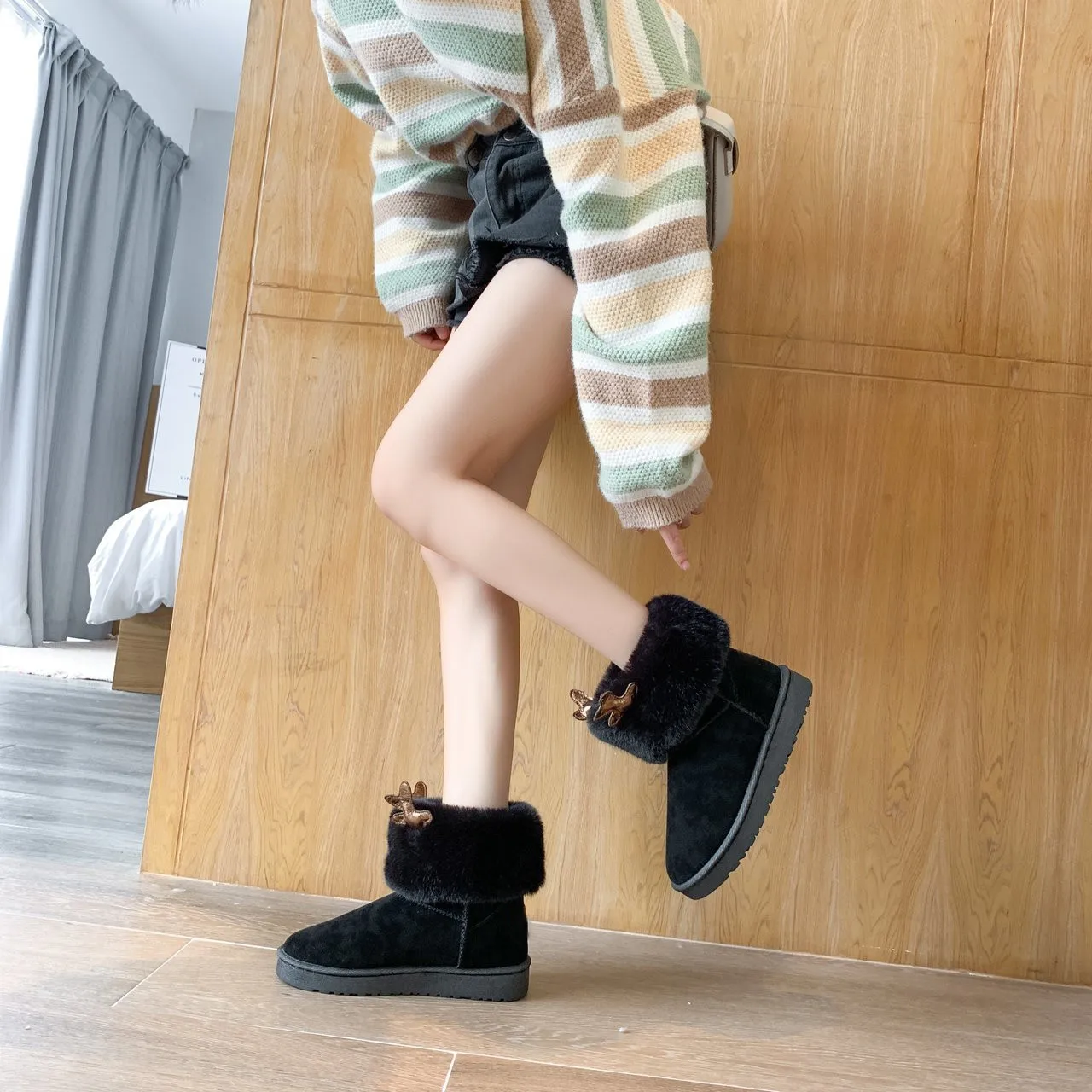 Ботинки женские зимние из 2021 хлопка, с утолщенной меховой подкладкой