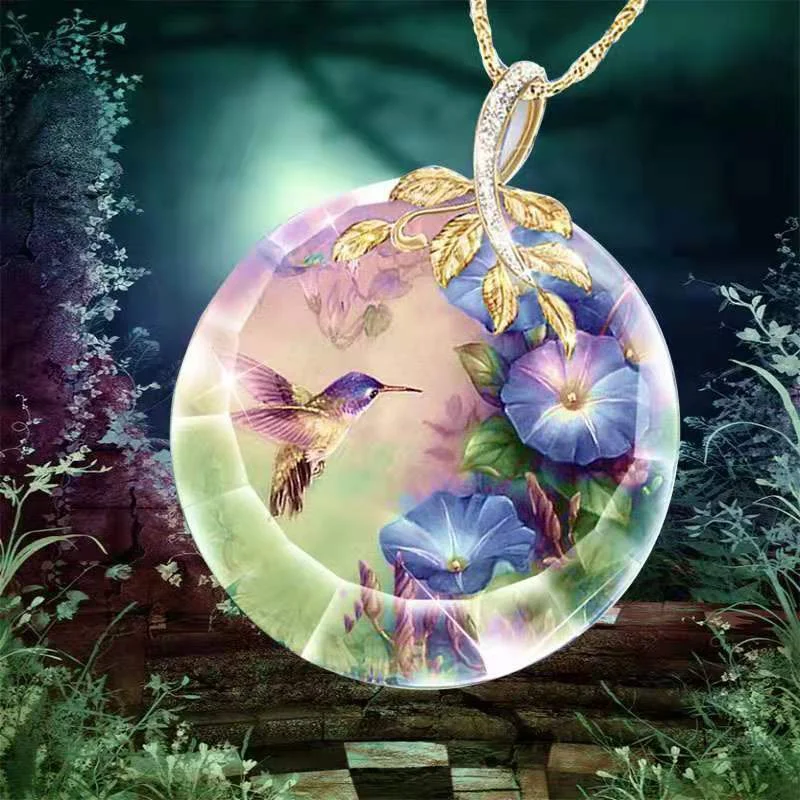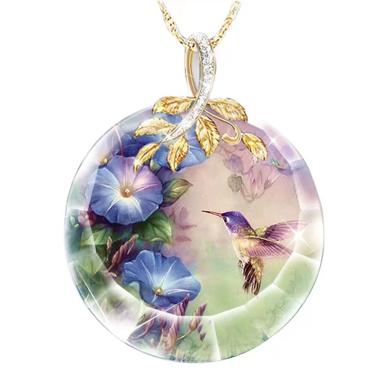 Женское ожерелье с подвеской в виде цветка Колибри из хрустального стекла, 2021