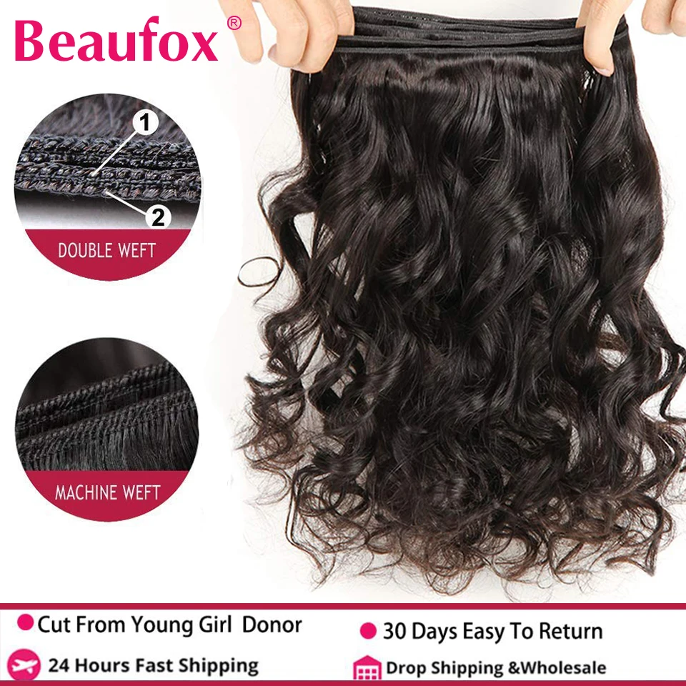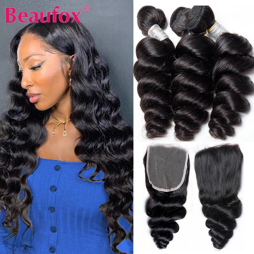 Beaufox свободные волнистые пучки с закрытием, человеческие волосы Remy 3 4 пряди с закрытием, бразильские пучки волос с закрытием 30 дюймов