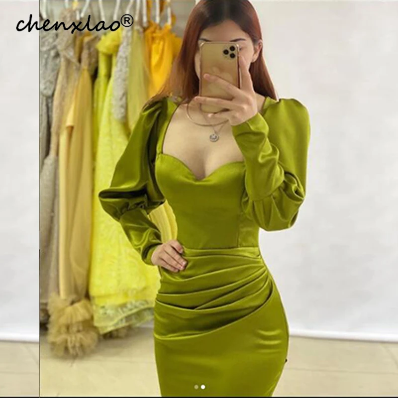Женское вечернее платье-Русалка Chenxiao, оливково-зеленое платье с длинным рукавом, высоким разрезом и квадратным воротником, складками, дизайн Саудовской Аравии