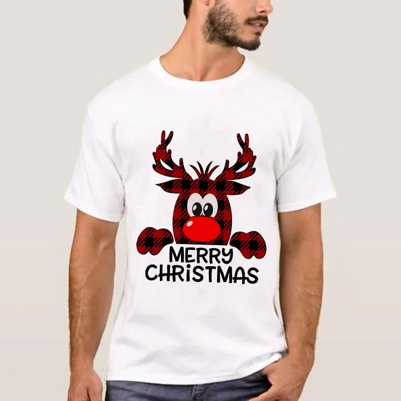 Мужская футболка с принтом рождественского оленя, Модная белая футболка, мужская повседневная Уличная футболка с коротким рукавом для рождественской вечеринки