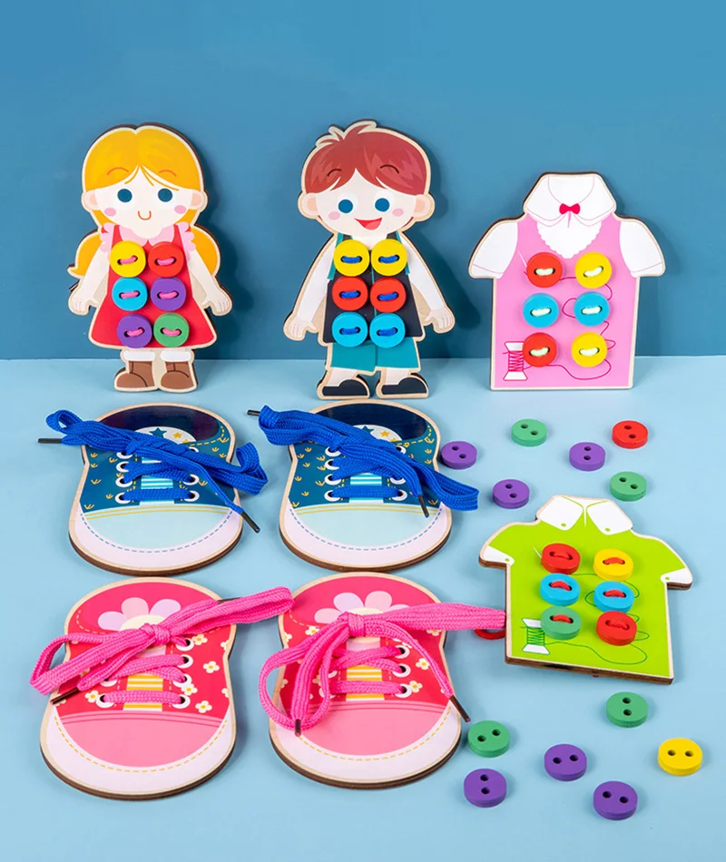Дети Монтессори игрушки дети учатся завязывать обувь платье доска игрушки малыш шить на кнопках дошкольной игрушки для основных навыков обучения