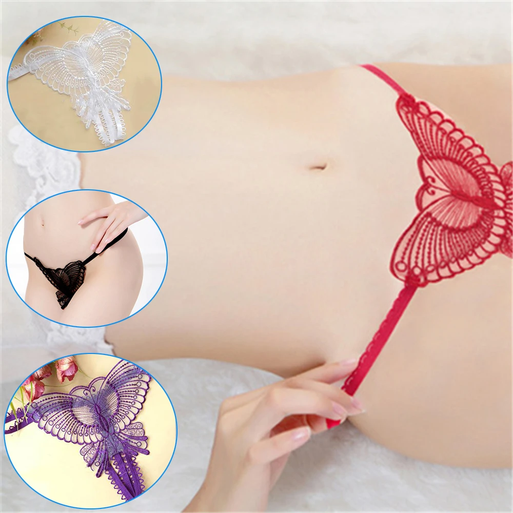 Купить сексуальные кружевные трусики стринги с бабочкой женские про...