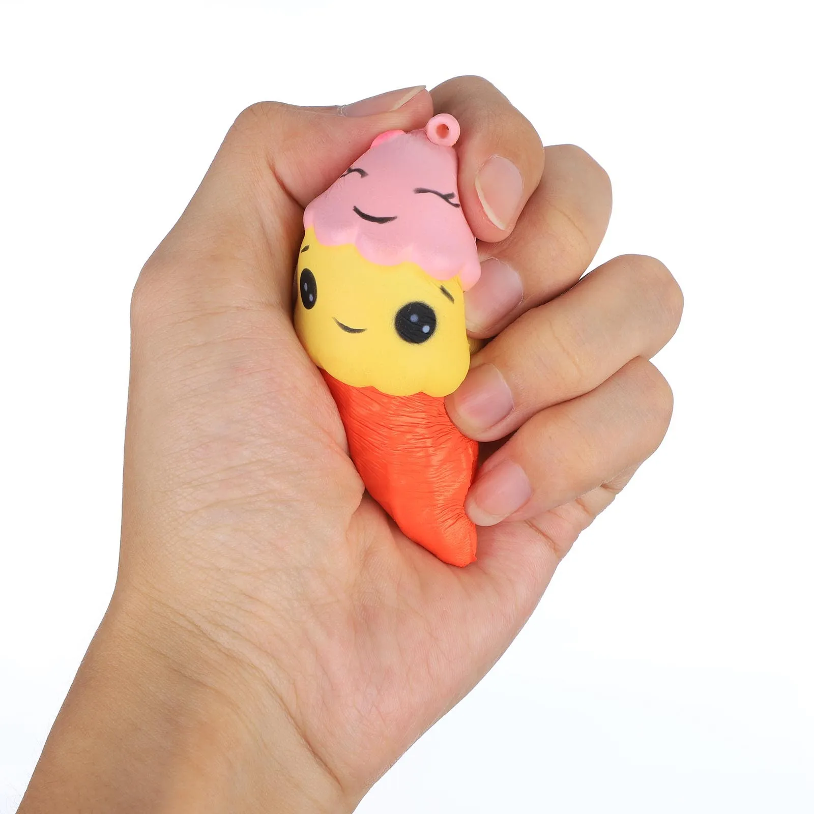 Материал: эластичный экологически чистый полиуретан Размер: 10*5*4,5 см Цвет: как показано на картинке Стиль: игрушка/Коллекция/ремешки для мобильного телефона Узор:Лед Крем Количество: 1 шт. Применимый возраст: старше 3 лет: Медленный рост