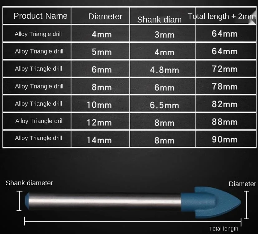 Набор сверл для стеклянной плитки, алмазный наконечник, наконечник из карбида вольфрама, наконечник, головка для керамической плитки, Мраморные сверла, стандартное сверление кирпичной кладки