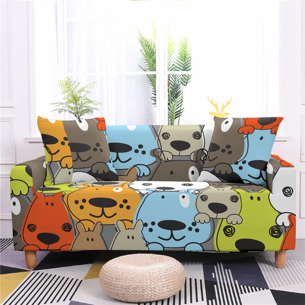 Эластичный чехол для дивана с мультяшными животными для гостиной, ч...