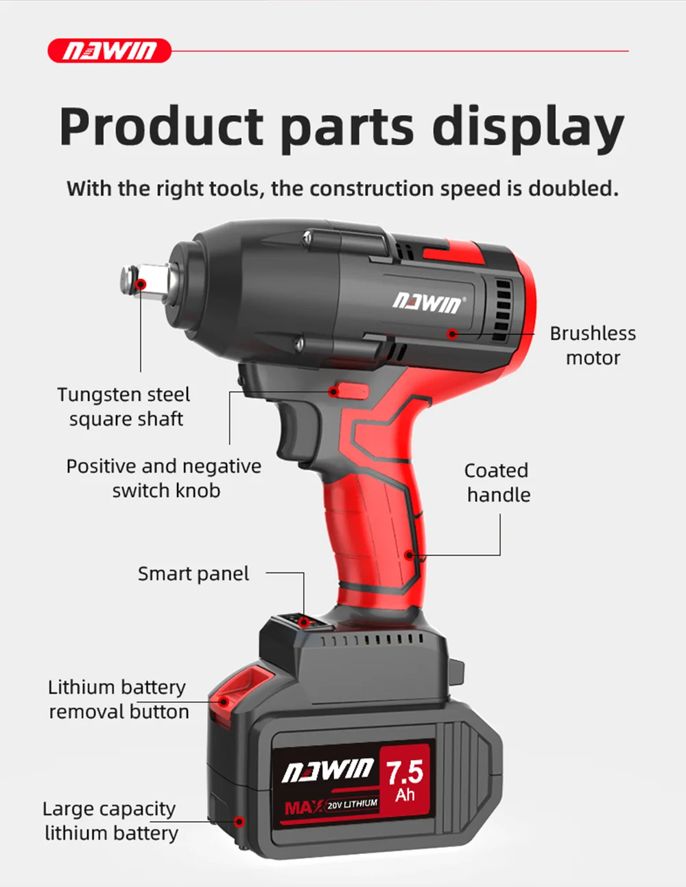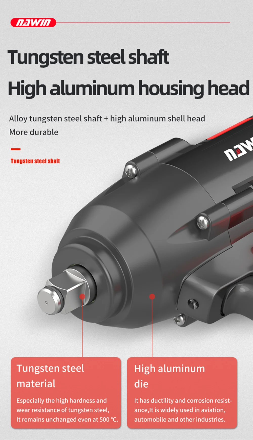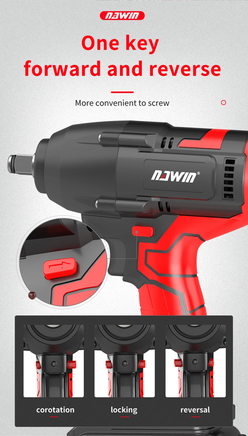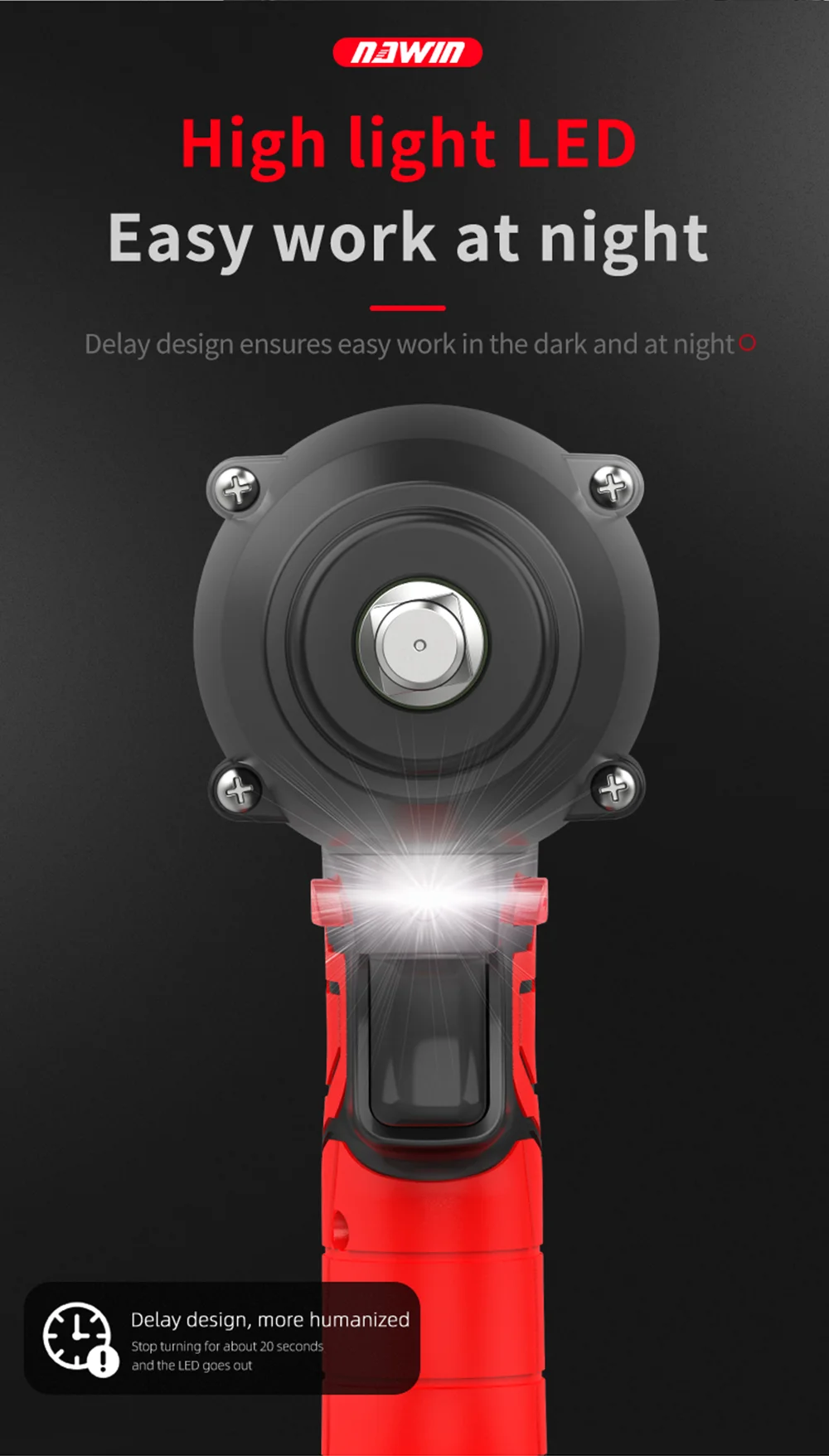 Доставка около месяца. Продавец отправил гайковёрт под названием DELIXI а не NAWIN. На БМВ колёсные гайки открутил не все. Конечно, момент не соответствует 600 N. m.