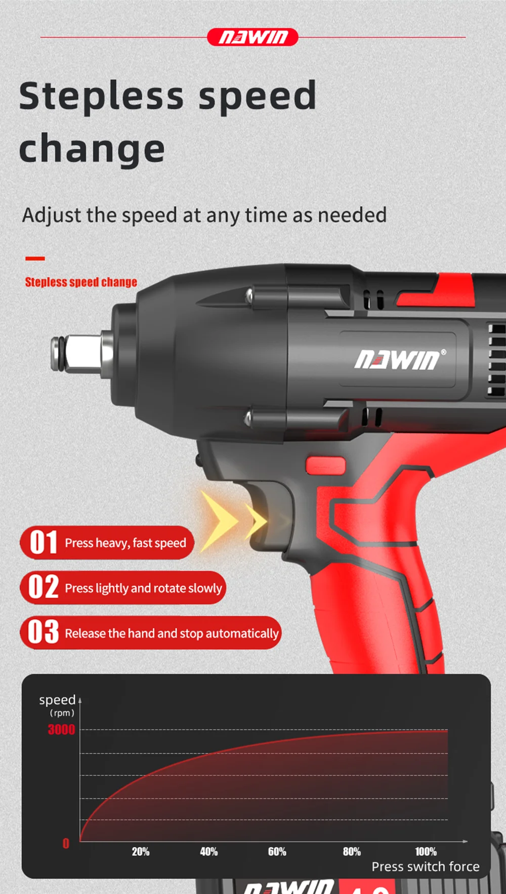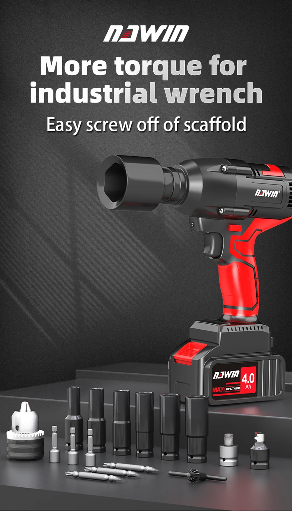 Промышленный бесщеточный литиевый гаечный ключ, 600N, беспроводной электрический гаечный ключ с супер крутящим моментом, легкое снятие автомобильных шин