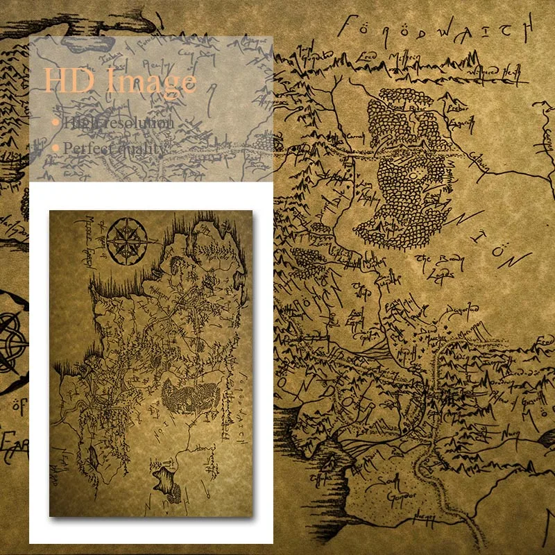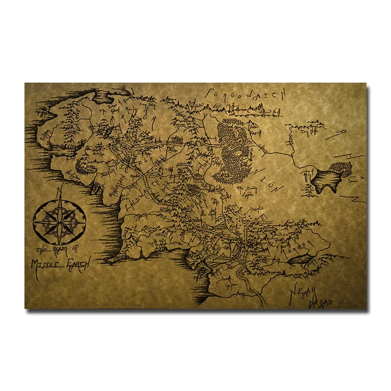 Карта средней земли холст художественный плакат Винтажный стиль печ...