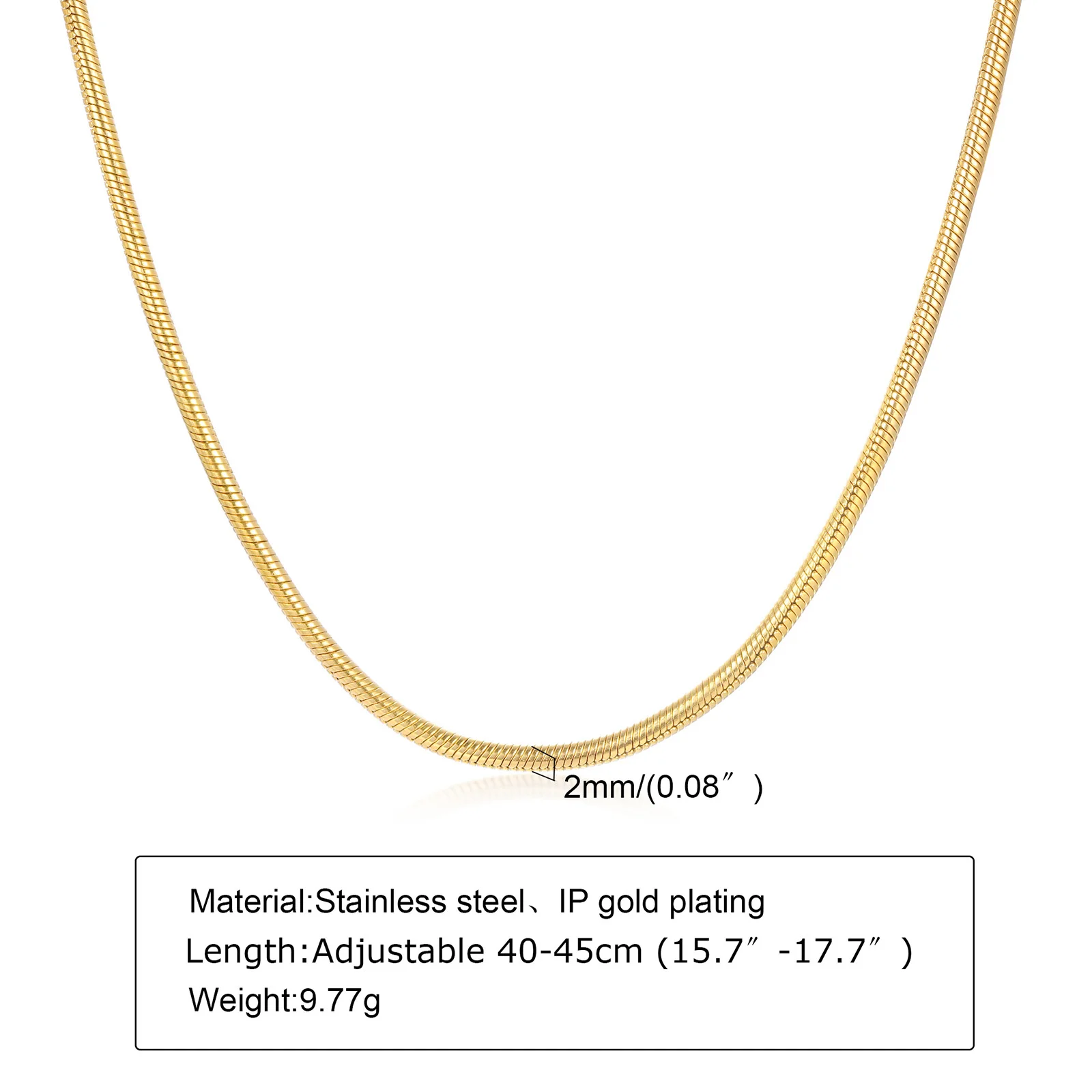 2 мм круглая цепочка-змейка, колье из нержавеющей стали, позолоченн...