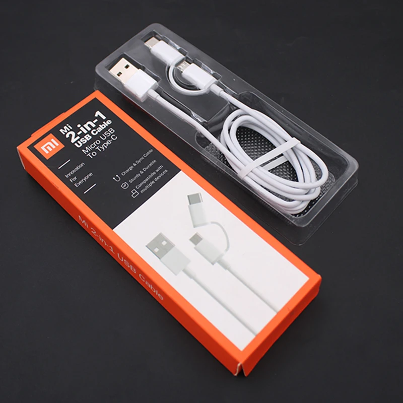 Оригинальный кабель для быстрой зарядки Xiaomi Mi 2 в 1 Micro USB + USB Type-C кабель для быстрой зарядки для Redmi 8T 8A Note 7 8 Pro Mi 10 9 Pro A3