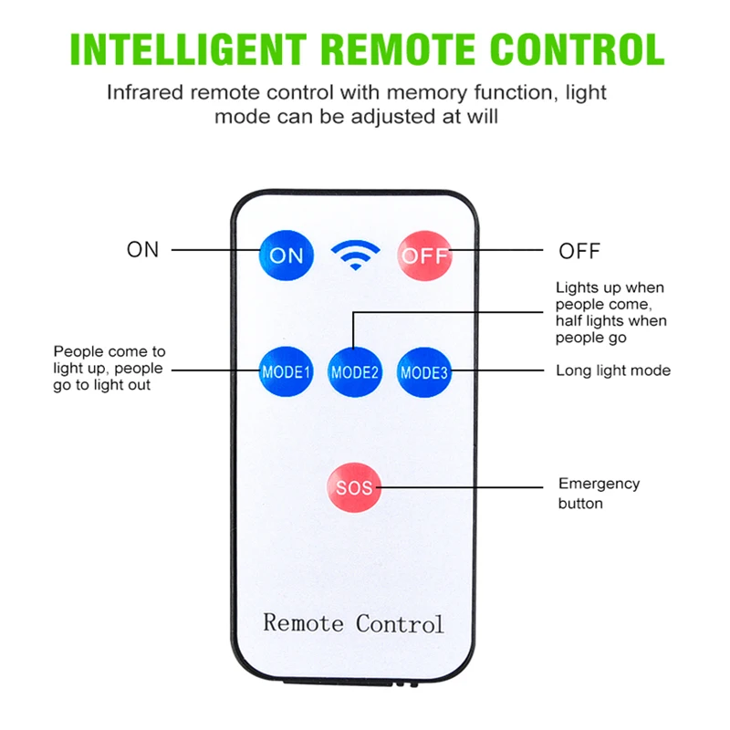-Автоматическое включение: датчик движения PIR может сканировать источник тепла, который непрерывно перемещается в пределах диапазона обнаружения. Когда кто-то появится в области, светильник автоматически включится.