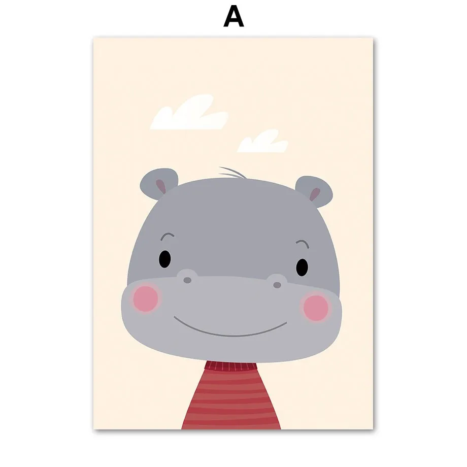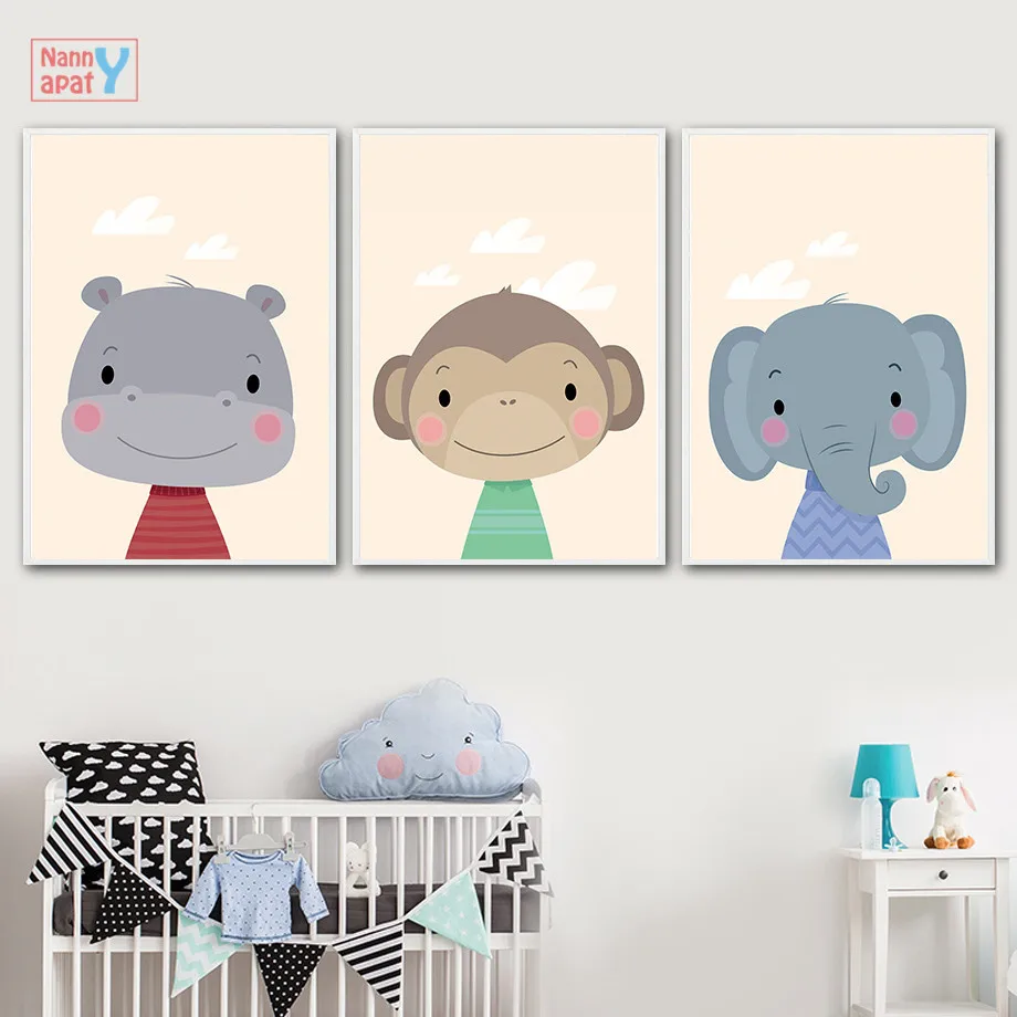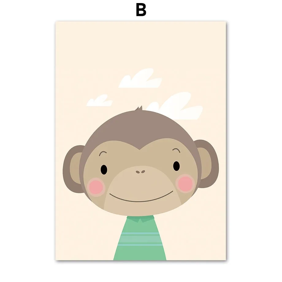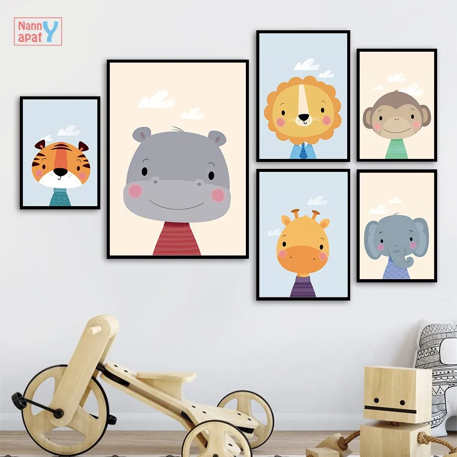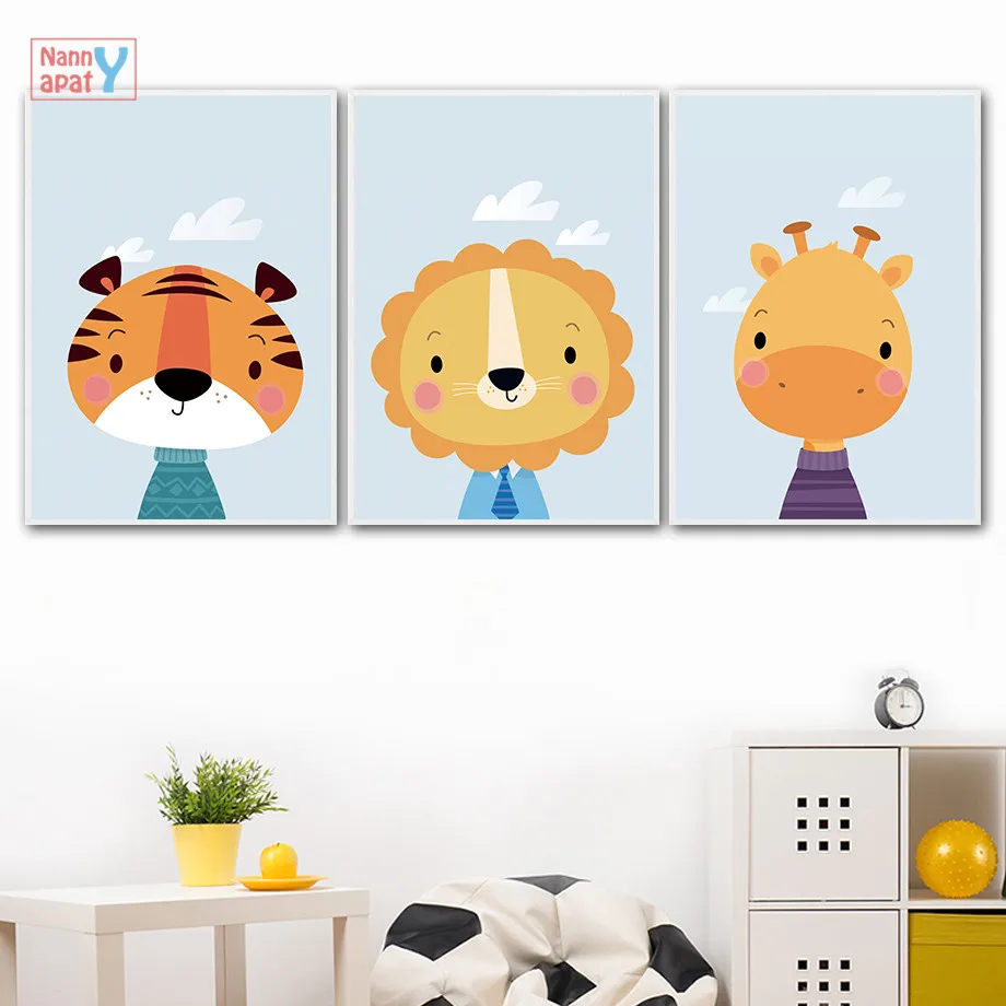 Картина на холсте для детской комнаты, Постер в скандинавском стиле с изображением Льва, тигра, жирафа, слона, Мультяшные животные, домашний декор для детской комнаты