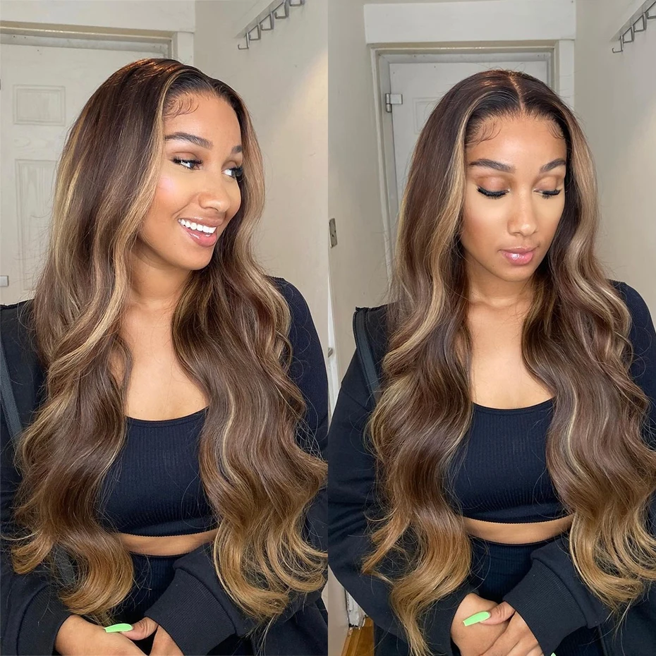 RXY 28 дюймов 180 плотность 427 выделение парик человеческие волосы 9A T часть прозрачные кружевные парики для женщин человеческие волосы блонд тело волнистый парик