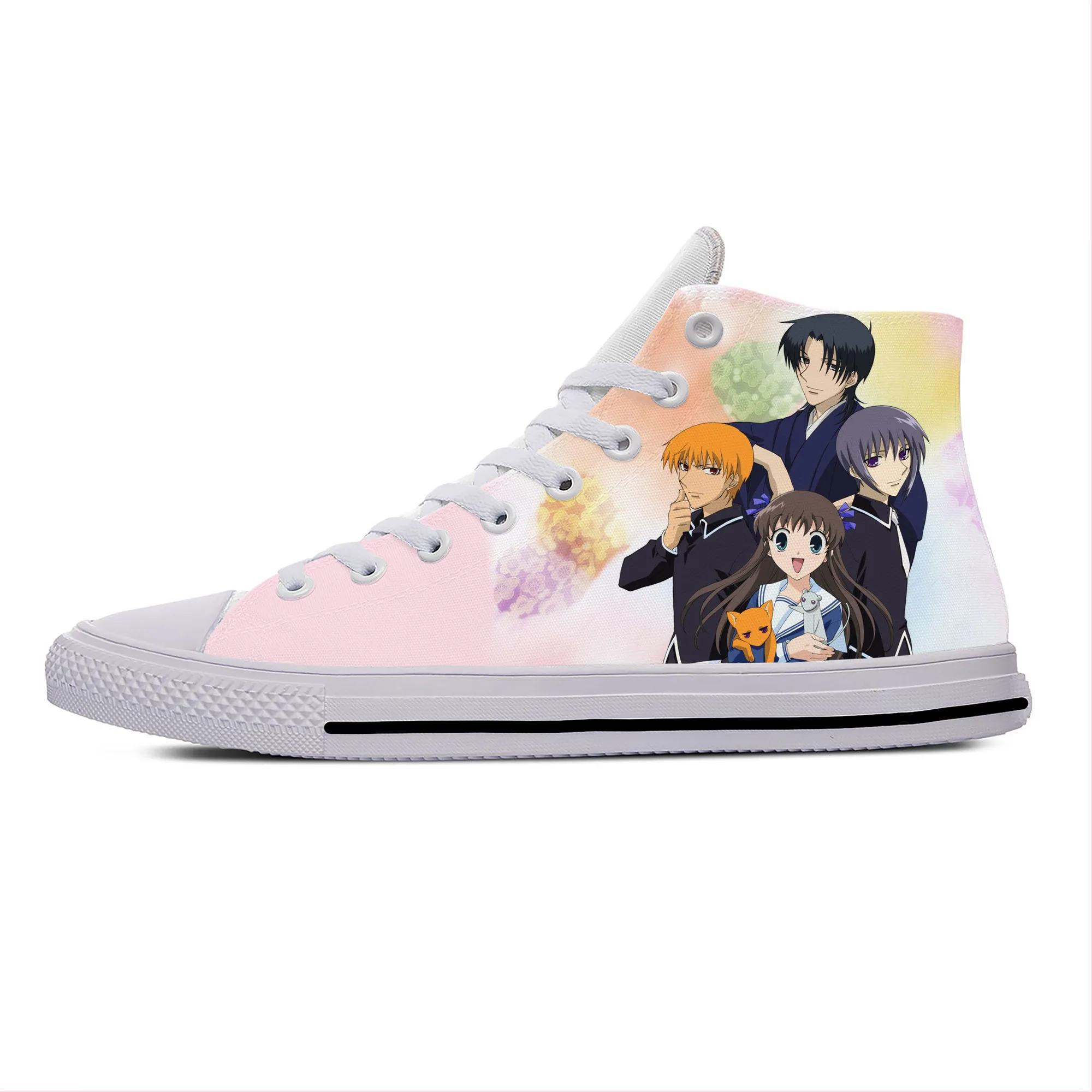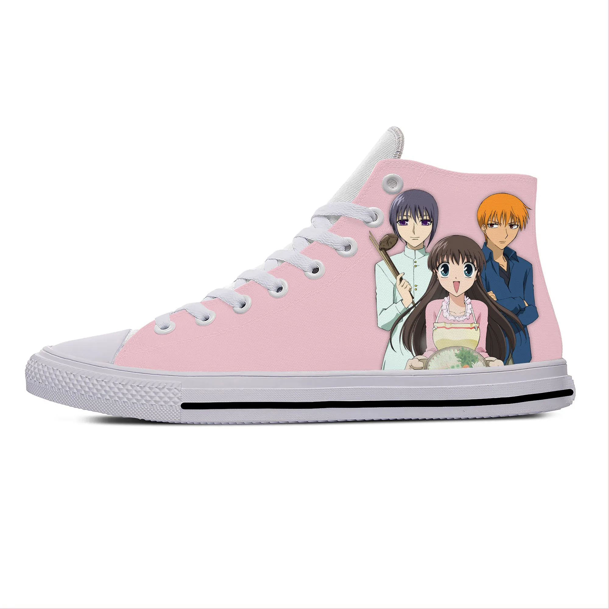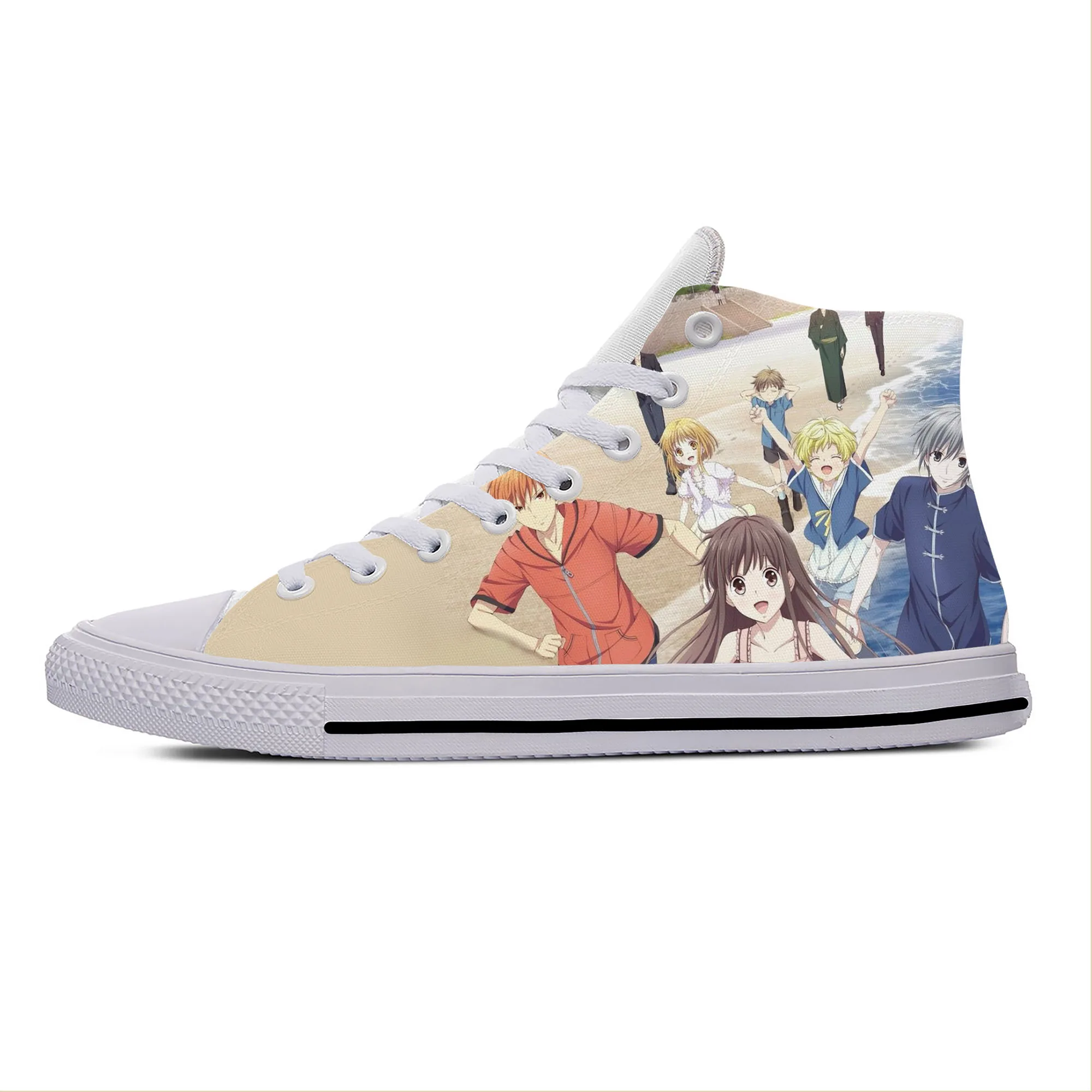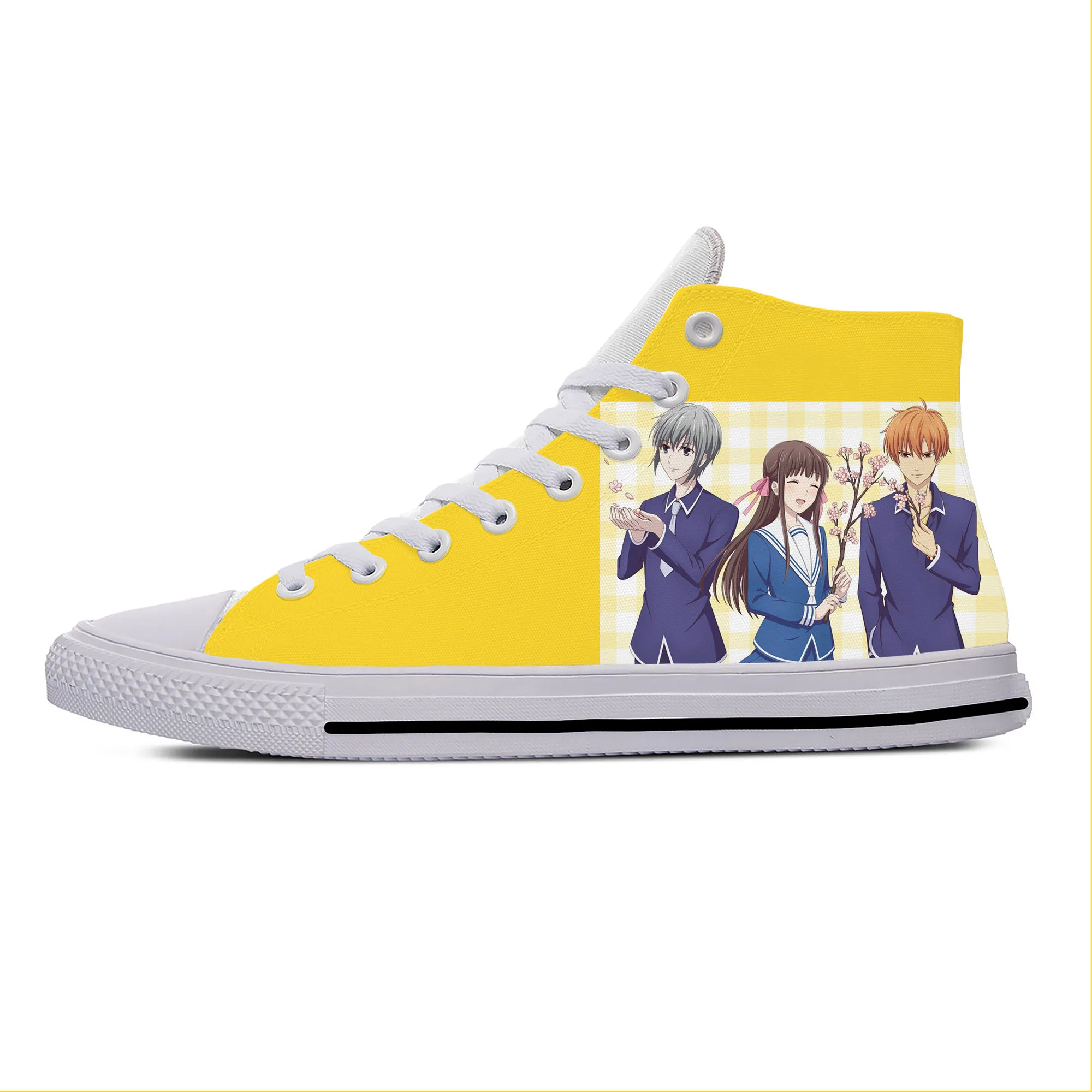 Кроссовки мужскиеженские с высоким верхом, забавные повседневные тканевые сникерсы с японским аниме рисунком манги, фруктов, корзины, легкие дышащие кеды с 3D принтом