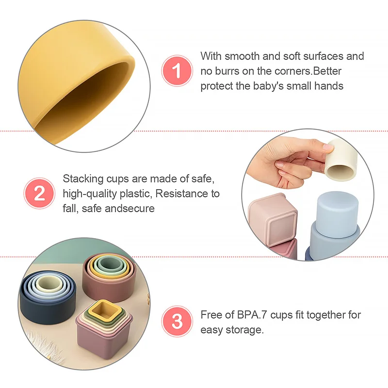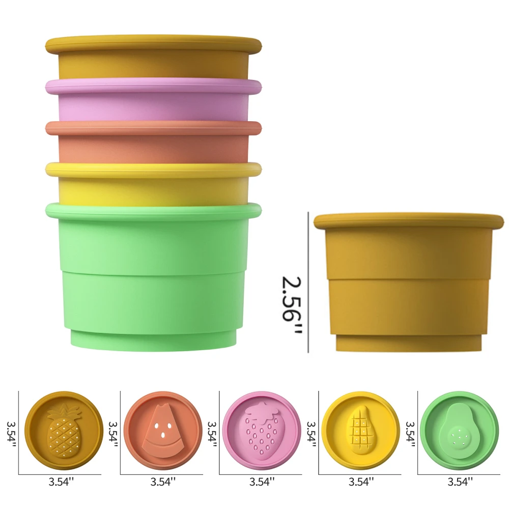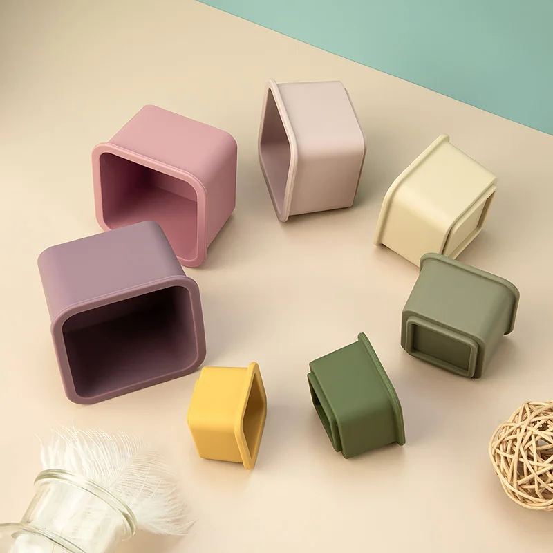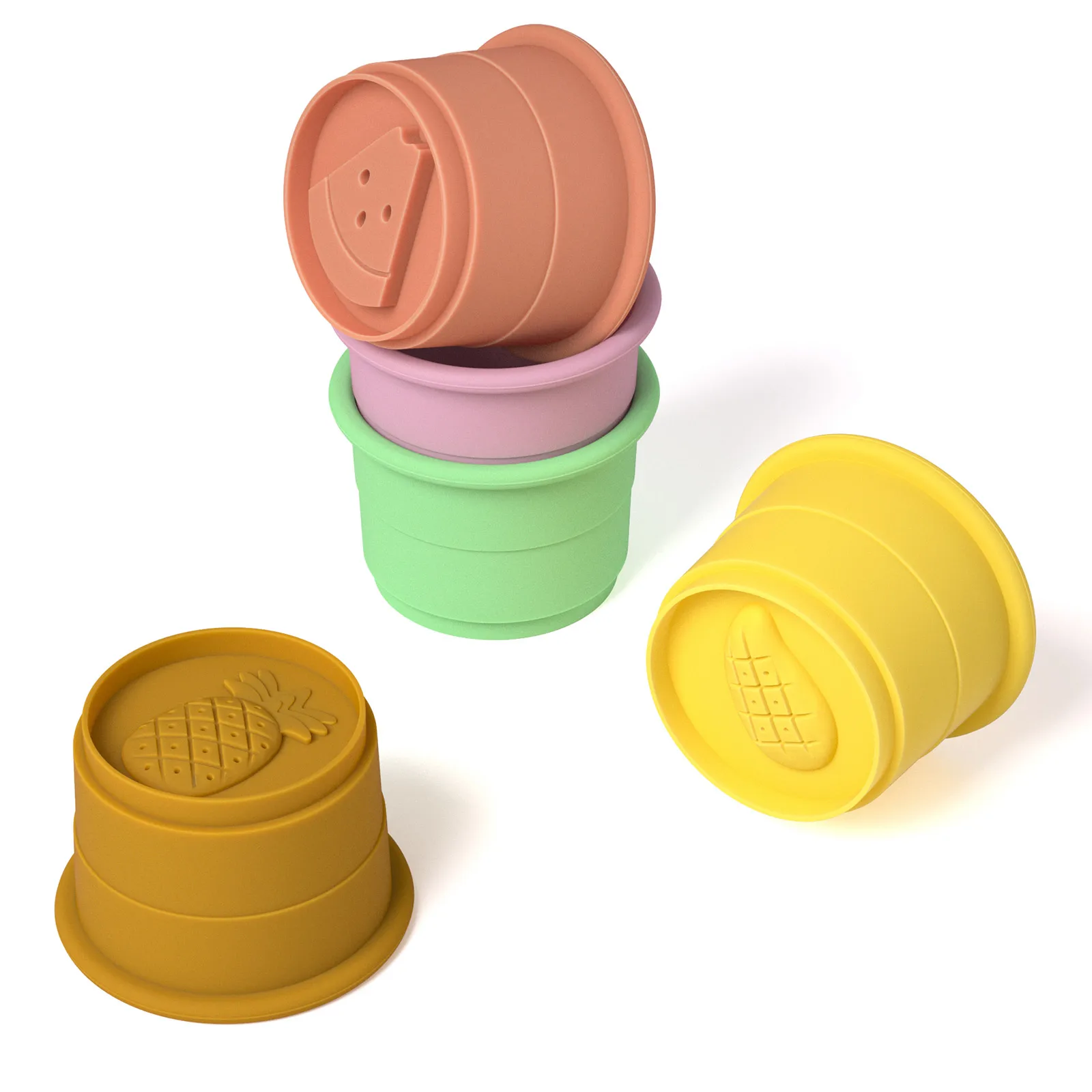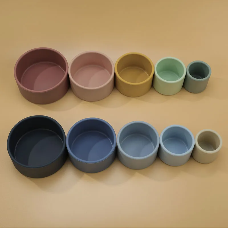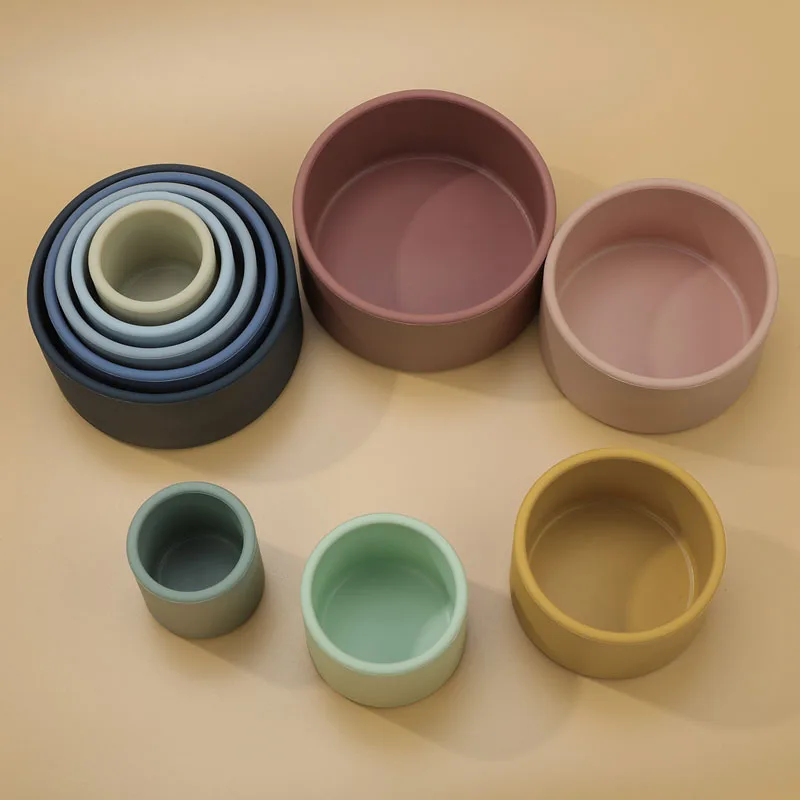 Развивающие игрушки Монтессори, детская силиконовая Штабелируемая чашка, красочный Интеллектуальный подарок, складная башня, игрушки для купания младенцев, Набор для игры в воду