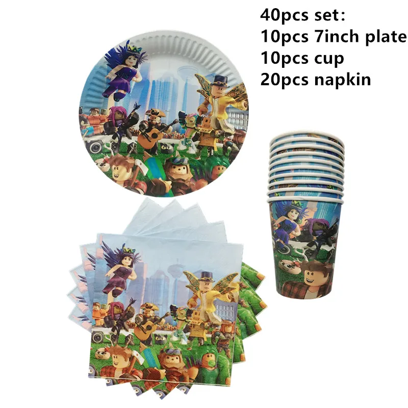 Roblo игра Дети День Рождения украшения Детская сумка на подарок бумажный стаканчик тарелки и нож ложка детская душевая посуда принадлежности