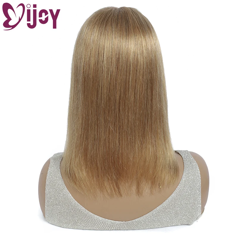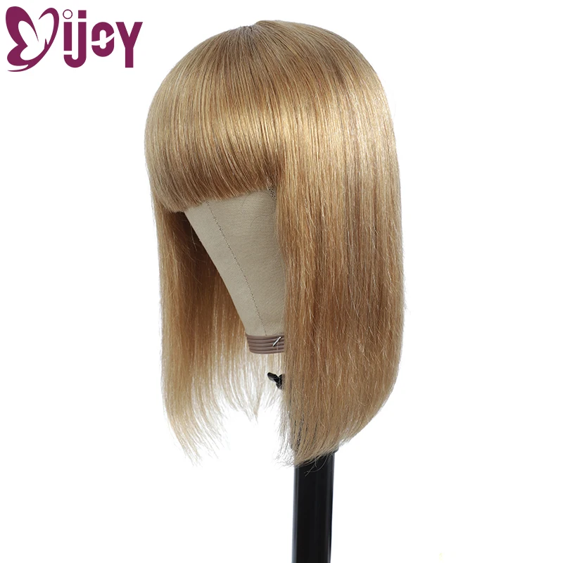 Короткие боб Бразильские парики из натуральных волос с челкой IJOY Медовый светлый прямой парик из натуральных волос, полностью машинные парики для женщин
