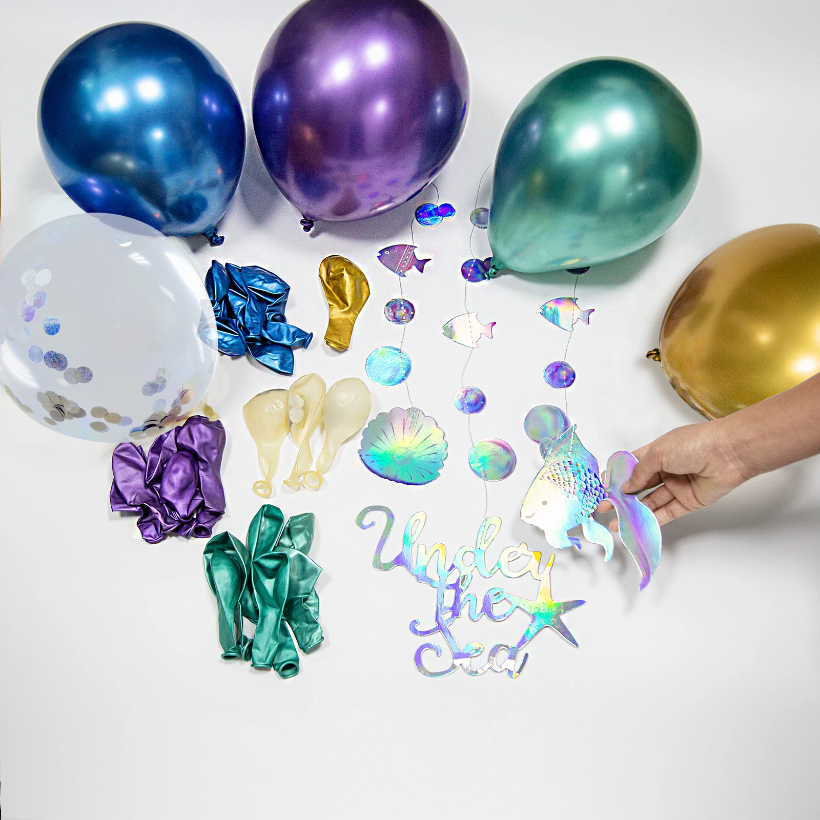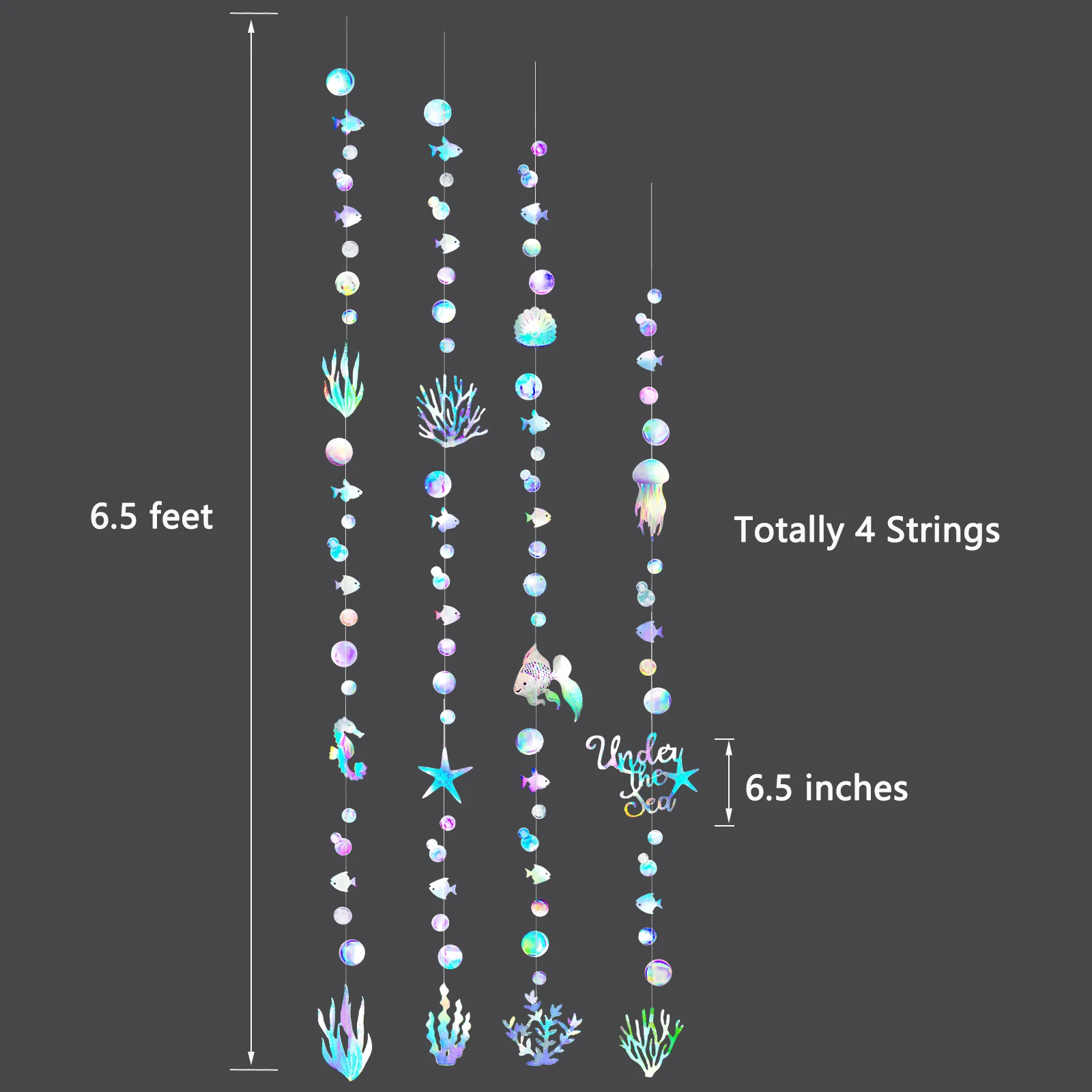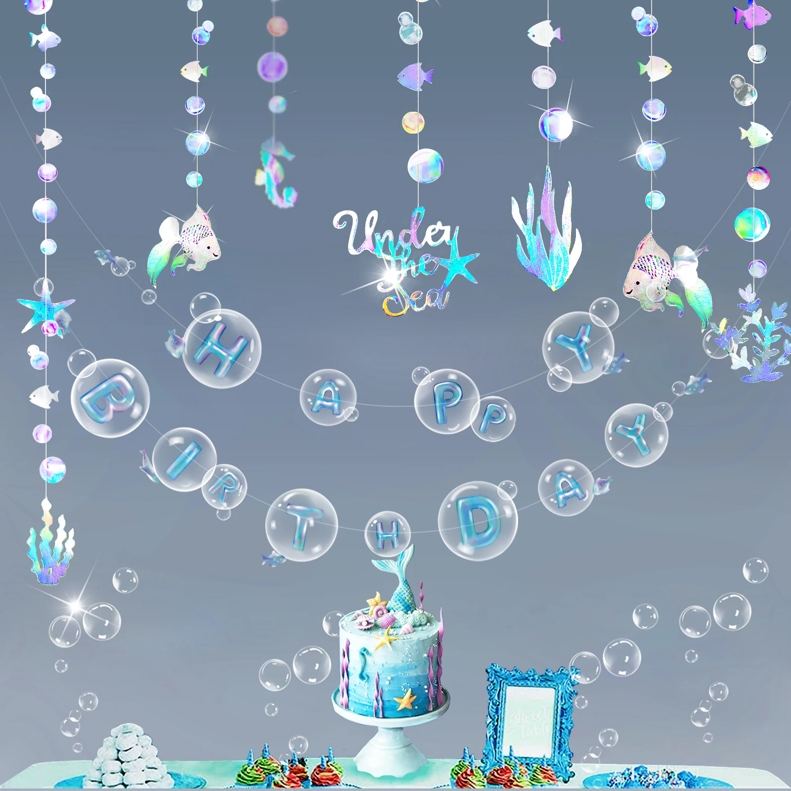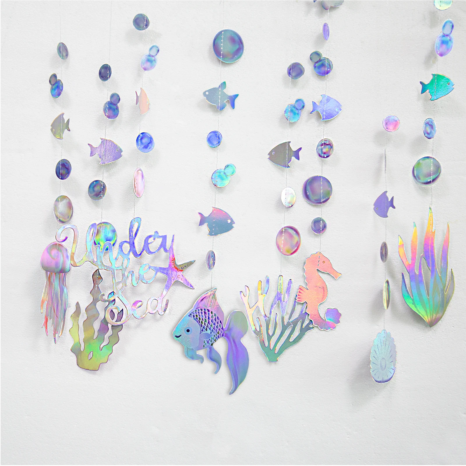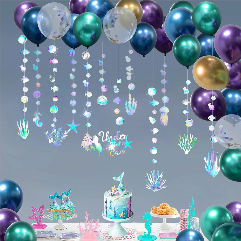Переливающиеся баннеры русалки под морем, подвесные украшения для дня рождения, морская звезда, медуза, пузырьки, голографические Фотообои