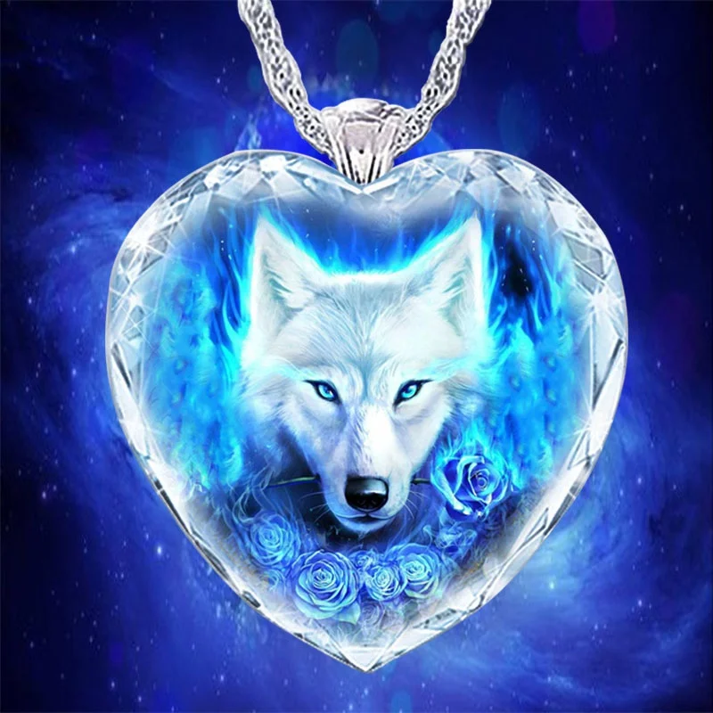 Ожерелье с подвеской в форме сердца из хрустального стекла, пчелы, синего призрака, волка, женское ожерелье, модные металлические аксессуары в виде животных, ювелирные изделия Вечерние