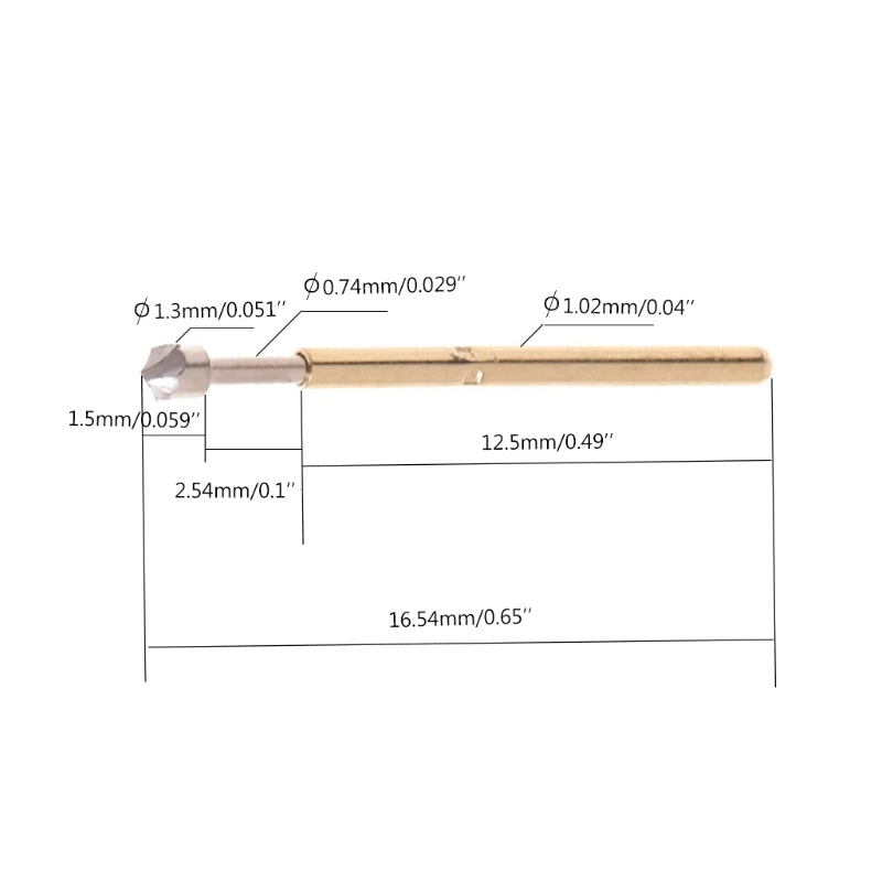100 шт., пружинный тестовый зонд, внешний диаметр 1,02 мм, длина 16,5 мм