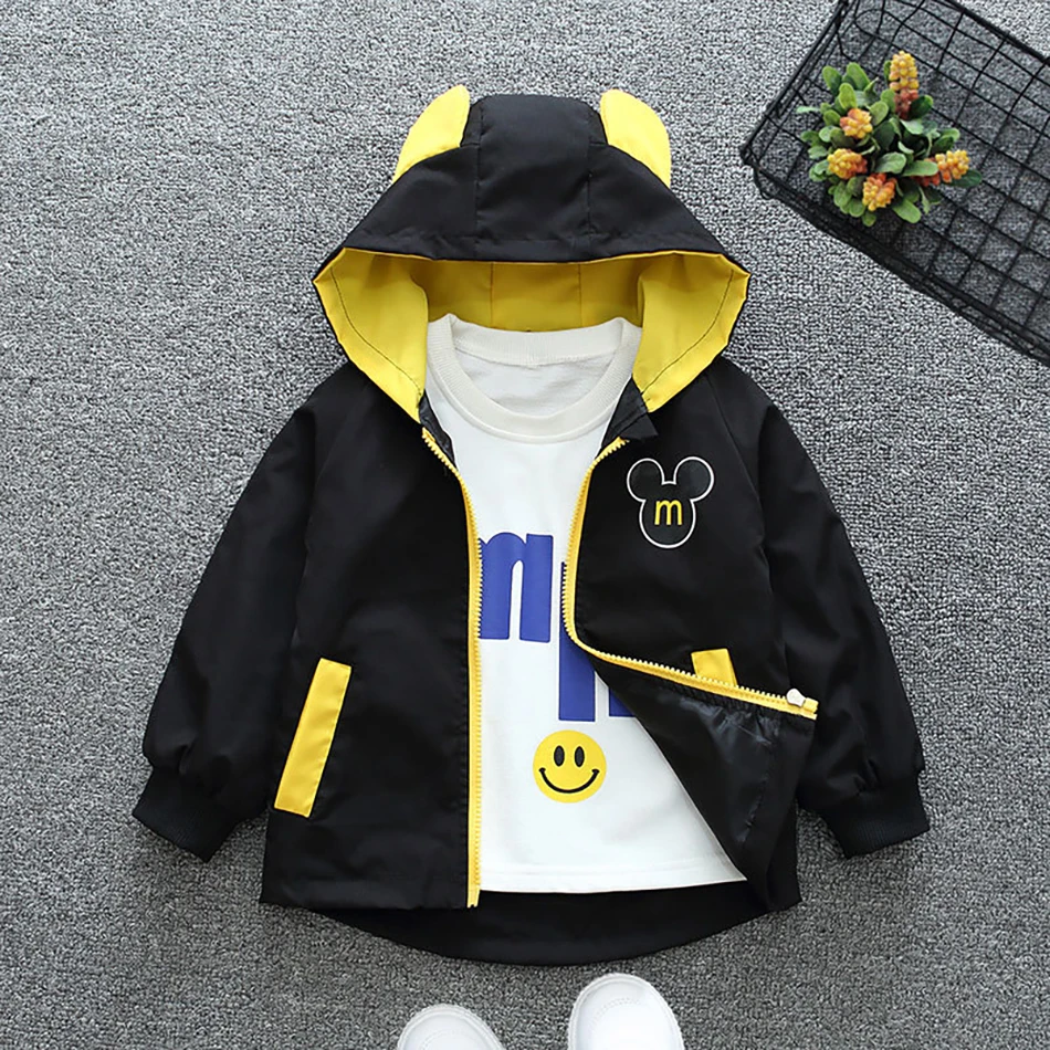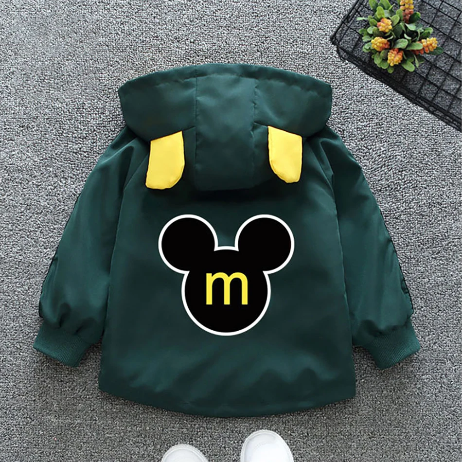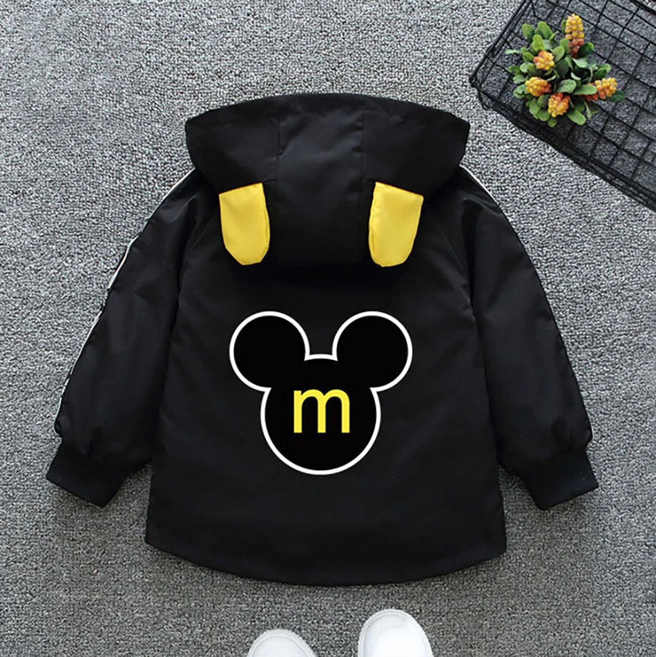 Весенне-осенняя куртка для маленьких мальчиков, пальто, детская толстовка на молнии с мультяшным Микки Маусом, ветрозащитная верхняя одежда, кардиган, пальто с капюшоном