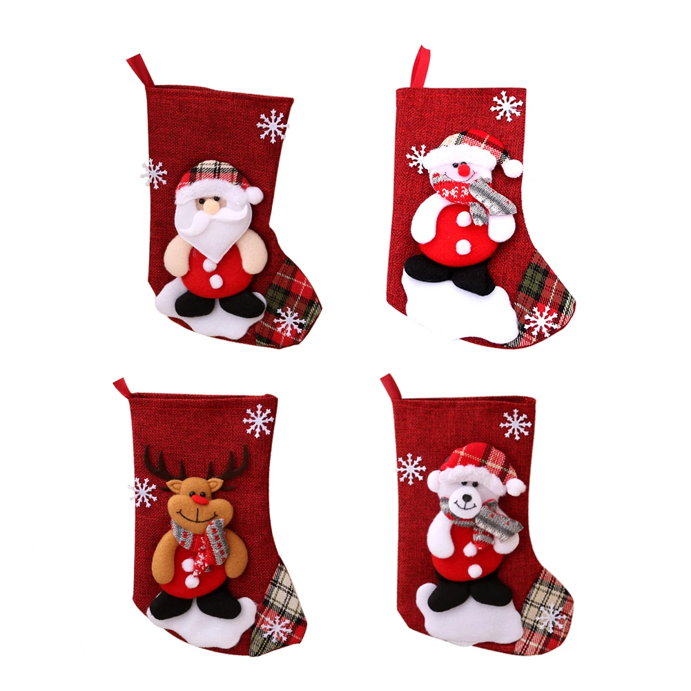 Рождественские чулки, Носки с рисунком снеговика, Санты, лося, медведя, Подарочный мешок для конфет, украшение для рождественской елки и камина, новый год