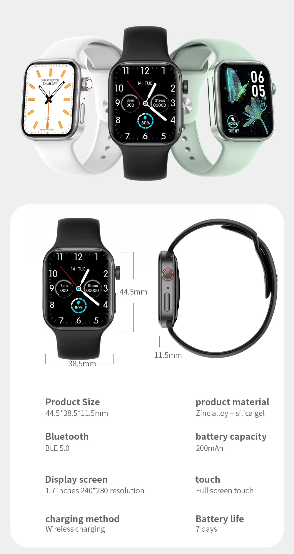Примечание:1. Эти часы имеют размер 44 мм, у них есть только одна круглая кнопка, пожалуйста, свяжитесь с нами, чтобы просмотреть более подробную информацию и реальные фотографии перед покупкой.2. Пожалуйста, не помещайте умные часы в горячую воду или в воду в течение длительного времени.3. Умные часы не могут синхронизировать телефон ios с телефонной книгой и сообщениемСпецификация:Набор микросхем: MTK2502DРазмер: 44*38*10,7 ммМатериал корпуса: цинковый сплавРемешок: подходит для всех 42/44 мм и 40/38 мм оригинальный плечевой ременьЗарядное устройство: магнитное зарядное устройствоЦвет: черный и серебристыйЭкран: 1,75 HD IPS, 320*385Сенсорный экран: 2.5D изогнутый емкостный полный сенсорный экранВерсия Bluetooth: 3,0, 4,0Аккумулятор: литий-полимерный аккумулятор большой емкости 220 мАчЯзыки: английский, французский, испанский, польский, португальский (Бразилия) Италия, голландский, малайский, индонезийский, немецкий, вьетнамский, русский, турецкий, арабский, тайский, греческий, японскийФункция:Основные функции: поддержка звонков по Bluetooth, проверка температуры тела, частота сердечных сокращений, BP и ECGШаги, Fruit wath 5 размер, 44 мм сменный ремешок, умное меню стиля улей, меню nine box, IP68 водонепроницаемыйBluetooth Push: SMS, WeChat, электронная почта, Facebook новости и другие уведомления приложений напоминаниеМонитор сердечного ритма: монитор сердечного ритма, мониторинг сердцебиения 24 часаЭКГ: анализ данных ЭКГШагомер: упражнения, потребление калорий, запись пробегаНапоминание о малоподвижности: пришло время двигаться и менять свой нездоровый образ жизниМонитор сна: запись и анализ состояния сна научно и количественноНайти телефон: напоминание о потере. Двусторонний поискМузыка Bluetooth: управление воспроизведением музыки на вашем телефонеВызов: Поддержка Bluetooth звонков с динамиком и микрофономВибрирующий двигатель: ПоддержкаДругие функции: будильник, календарь, секундомерУпаковка:Умные часы * 1Зарядный кабель * 1Руководство пользователя * 1Оригинальная Розничная коробка * 1