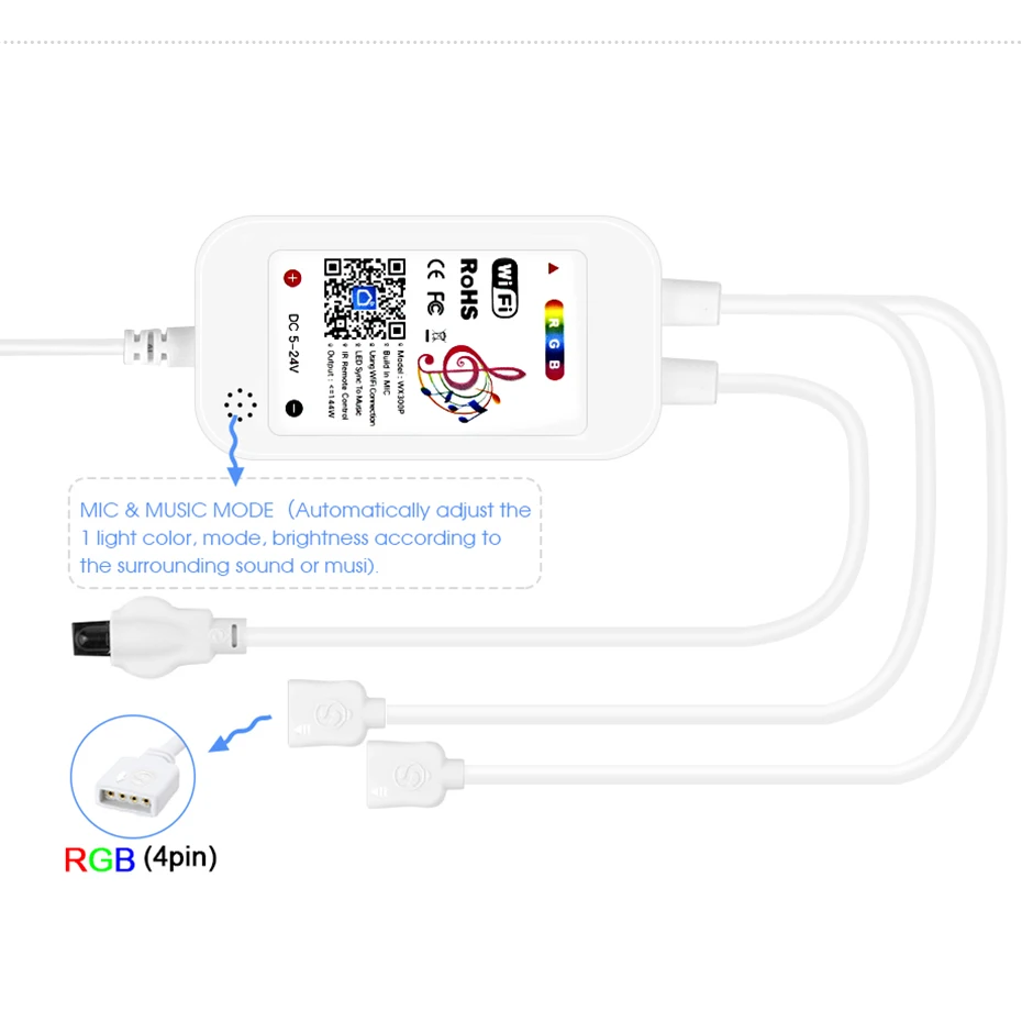 Контроллер: Tuya WiFi Smart Control ler + 24-кнопочный Пульт дистанционного управления (без аккумулятора)