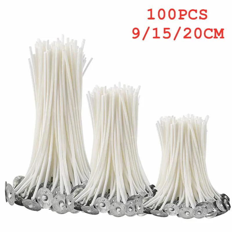 100 шт., хлопковые фитили для свечей, бездымный воск, сердечник из чистого хлопка, предварительно Вощеные фитили, сделай сам, изготовление свечей, товары для вечерние Ринок 91520 см