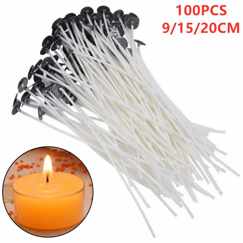 100 шт.компл. свечи, фитили, бездымный воск, сердечник из чистого хлопка, 91520 см, изготовление свечей сделай сам, предварительно Вощеные фитили для вечеринок