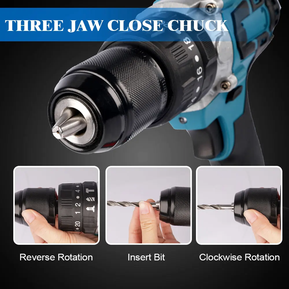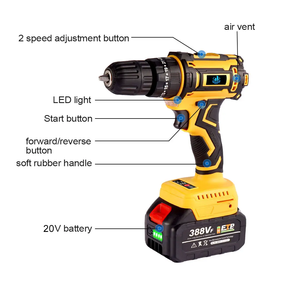 It worked well after trial. The motor has enough horsepower and the torque of the electric drill is also very good. It will not overheat and will become hot after a period of time. The blue-black appearance is my favorite color, the rubberized handle is very good, the grip is comfortable and not slippery, and the size is also very suitable. Convenient to hold and adjust the front and back direction. The battery has a power indicator light, which is very convenient to use.