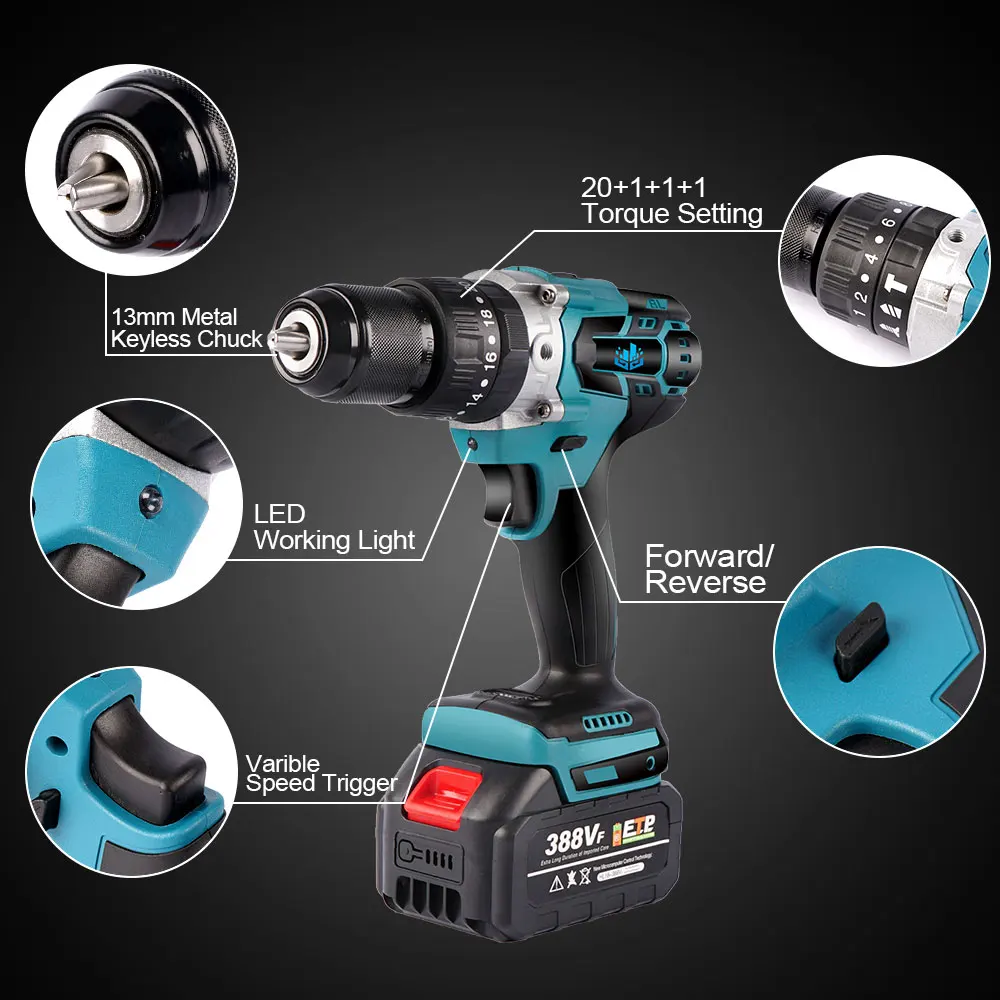 3-в-1 бесщеточная электрическая Ударная дрель, аккумуляторная ударная дрель, электрическая отвертка для батареи Makita, 18 в, домашние электроинструменты сделай сам
