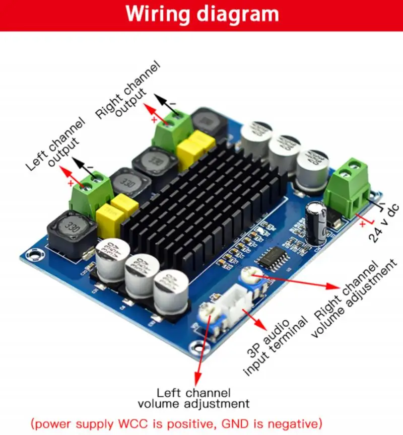 3. Выходная мощность: Пожалуйста, подключите динамик к выходному концу платы 0UT и обратите внимание на положительные и отрицательные полюсы!