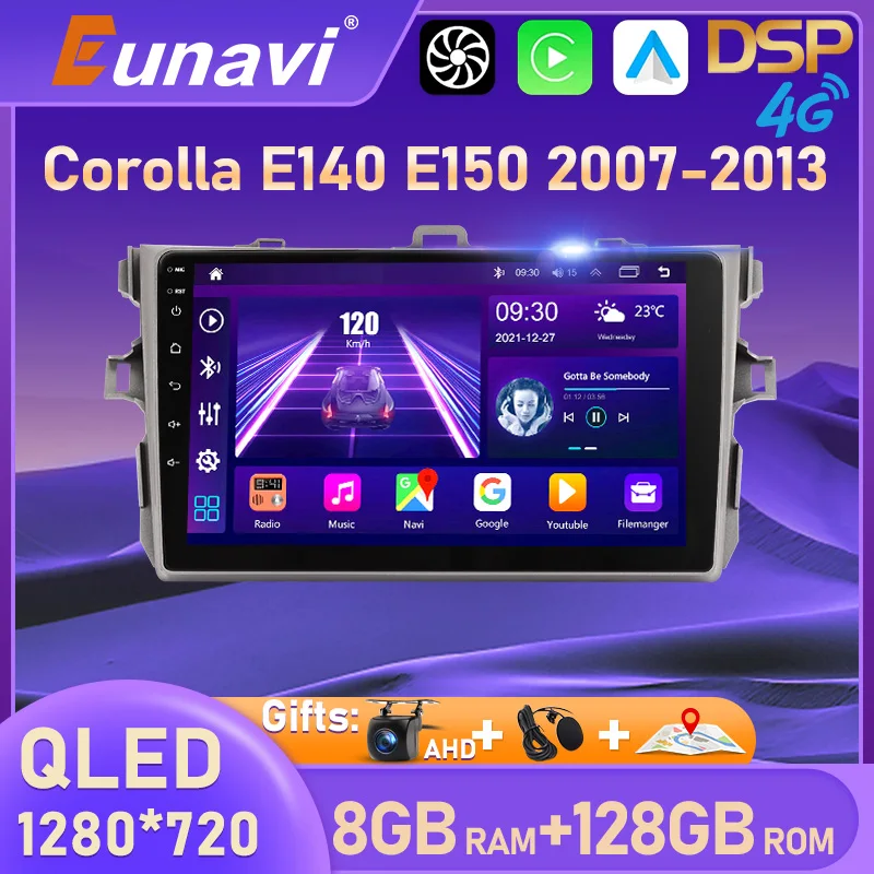 Eunavi 2 Din Android 10 автомобильное радио GPS для Toyota Corolla E140 E150 2007 - 2013 мультимедийный видео плеер 2Din DVD головное устройство DSP 4G