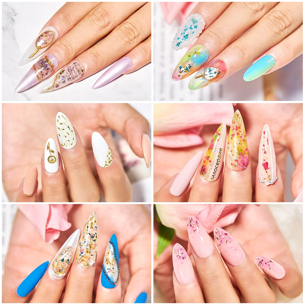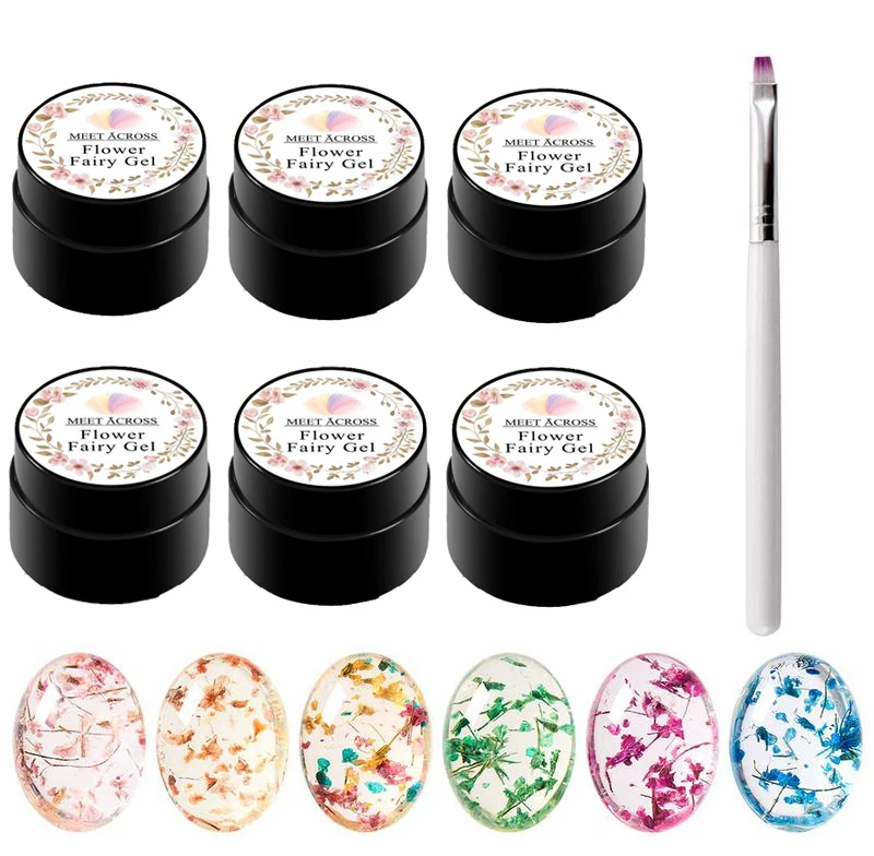 Набор Натуральных сухих цветов для ногтей MEET ACROSS, 6 коробок, удаляемый замачиванием Гель-лак для ногтей, гель с цветами лак для ногтей, наборы для самостоятельного дизайна и маникюра