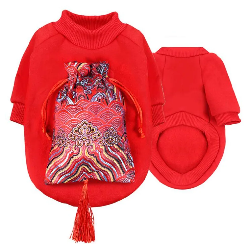 Китайский новый год фестиваль собака кошка пальто четыре ноги одежда для собак фестиваль домашних животных Косплей Толстовка Бог богатства зимний свитер