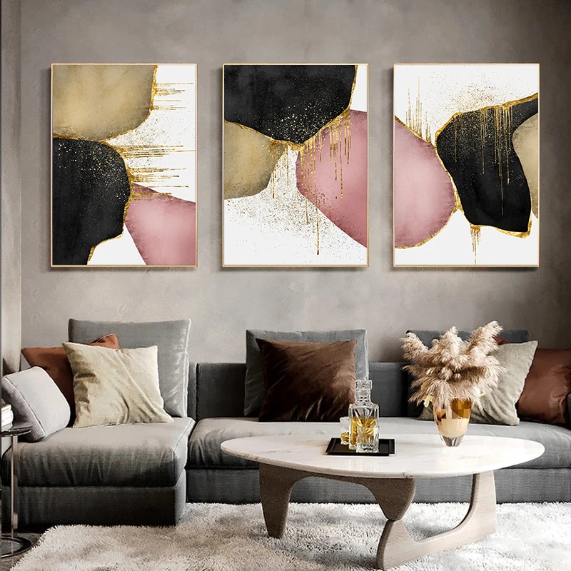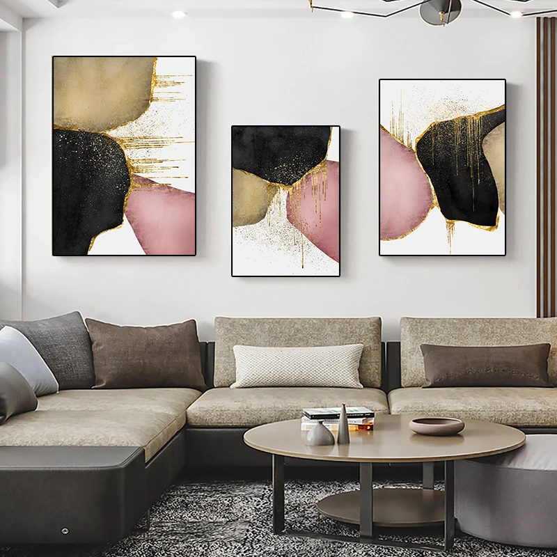 Розовая, черная, Золотая Абстрактная Картина на холсте, постер, принты, современный Декор для дома, настенное искусство, картины для украшения гостиной в скандинавском стиле