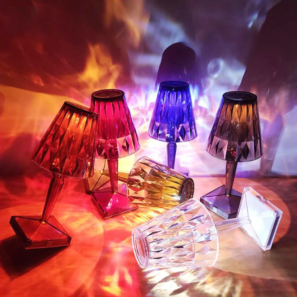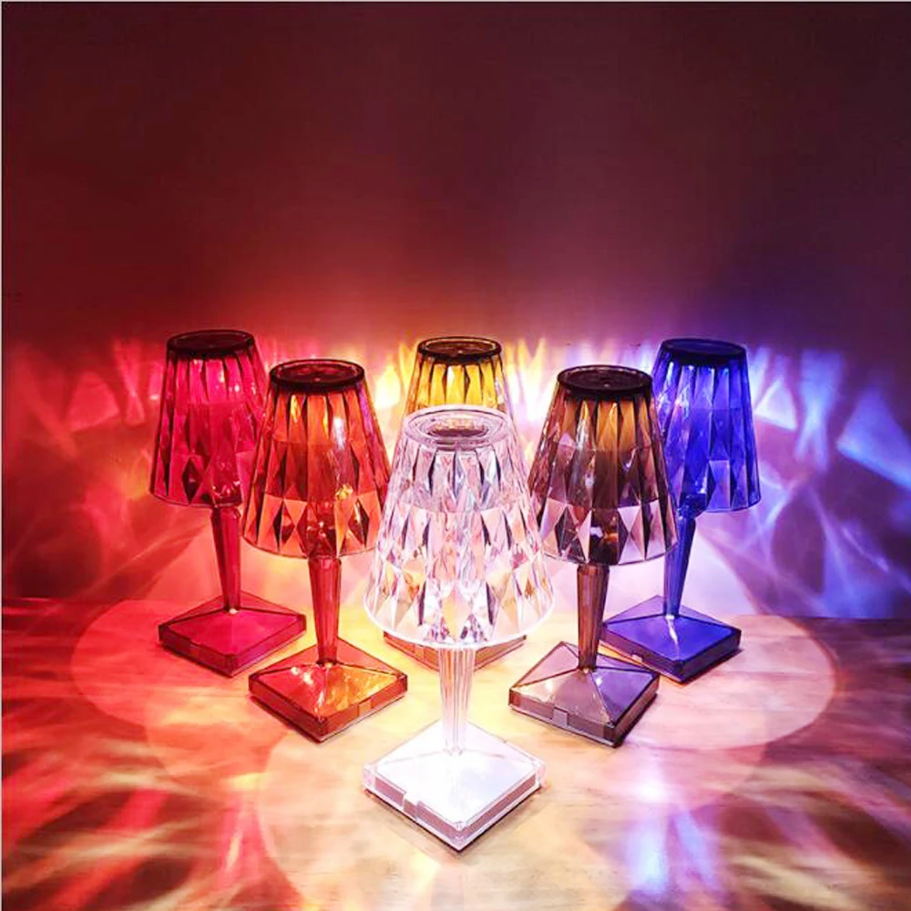 Алмазная Настольная лампа с USB-зарядкой, акриловые декоративные настольные лампы для спальни, прикроватного столика, бара, хрустасветильник освещение, Подарочный светодиодный светильник