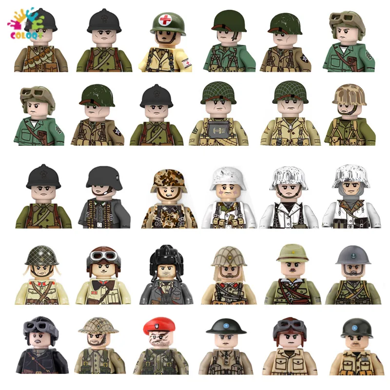 Детские игрушки 10 шт.лот WW2, военные французские фигурки, строительные блоки, 4-сторонняя печать США, солдаты Великобритании, кирпичи, игрушки для детей