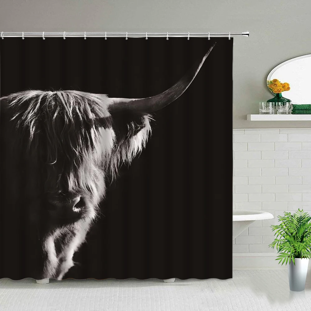Шторы для душа Черные Водонепроницаемые с крючками, в западном стиле