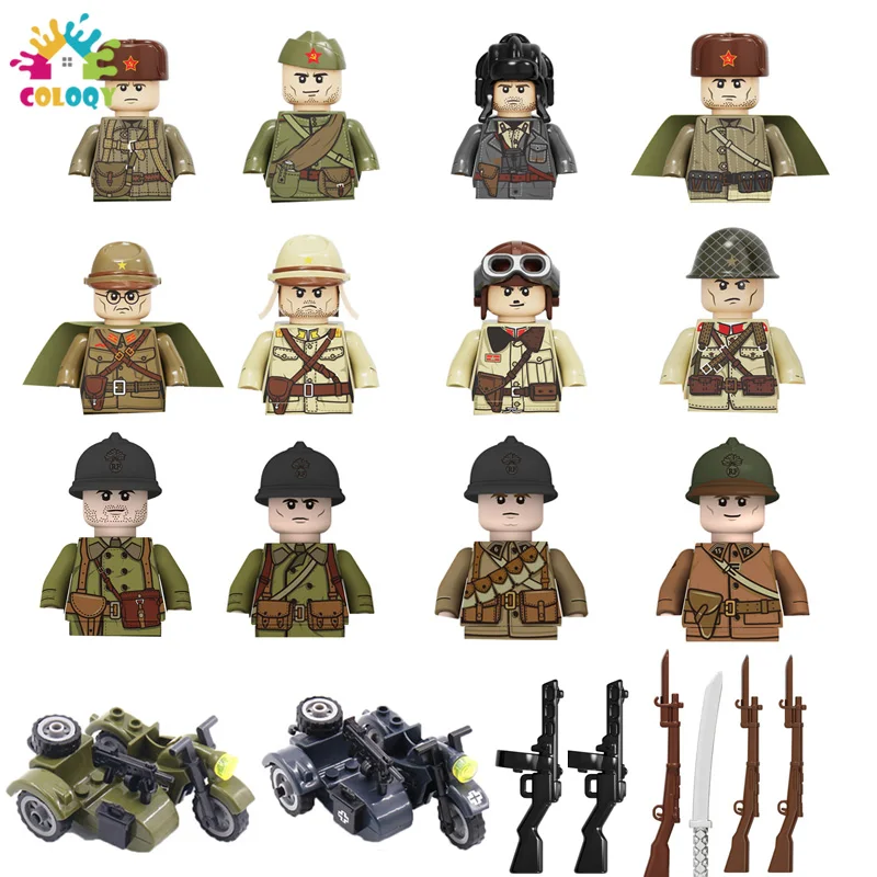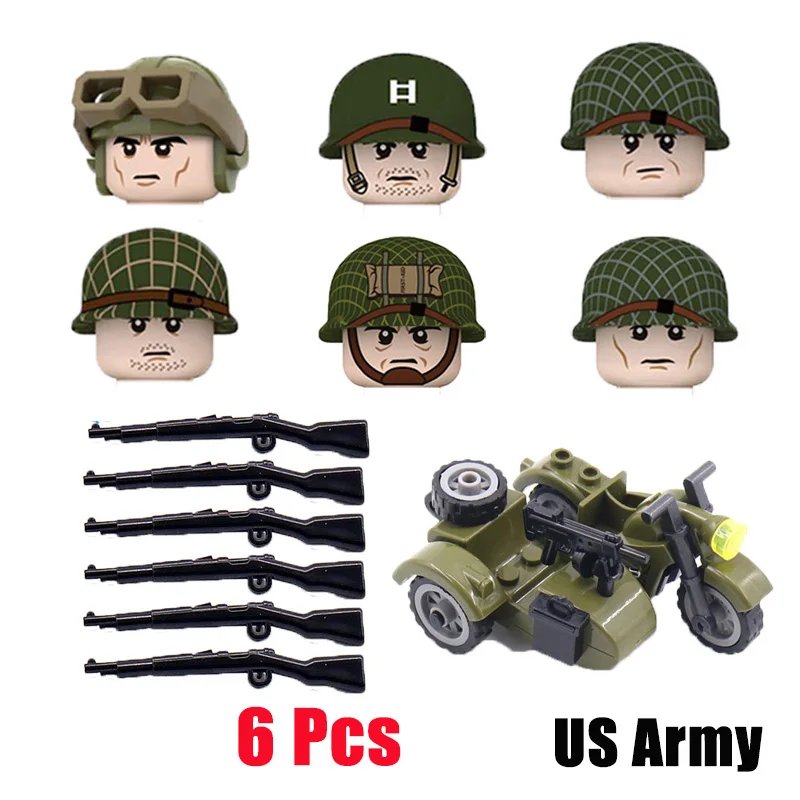 Детские игрушки, 2 мировая война, военные фигурки, строительные блоки, 4-сторонняя печать, американские французские солдаты, мотоцикл, кирпичи, игрушки для детей