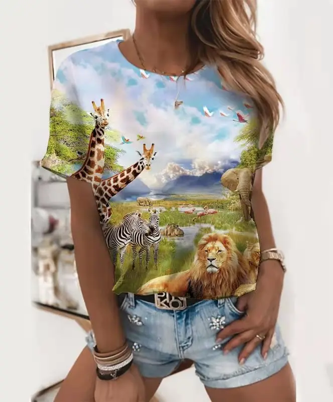 Футболка женская, с 3D-принтом бабочек и круглым вырезом, лето 2021 г.