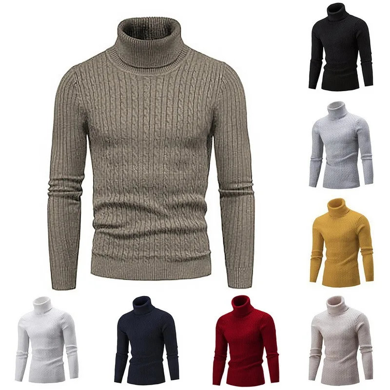 Повседневный мужской зимний однотонный трикотажный свитер с длинным рукавом и воротником-хомутом, Мужской пуловер, трикотажная одежда