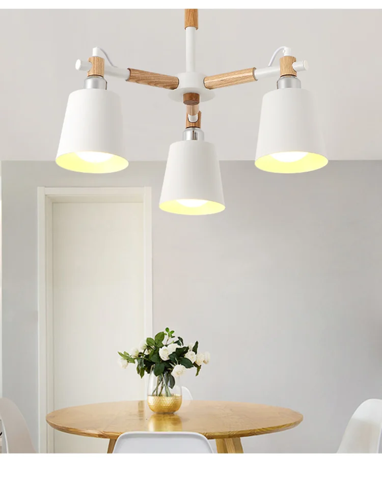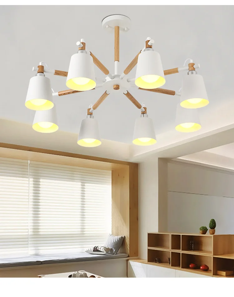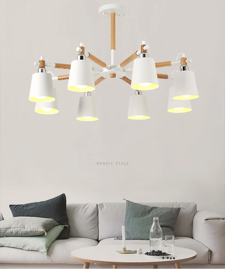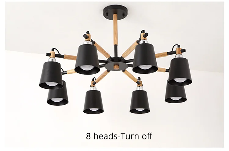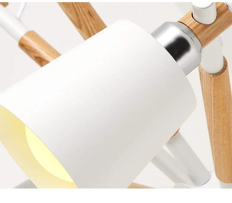 Скандинавская деревянная люстра, декоративное освещение для гостиной, спальни, лампы с железным абажуром, лампочки E27 в комплект не входят