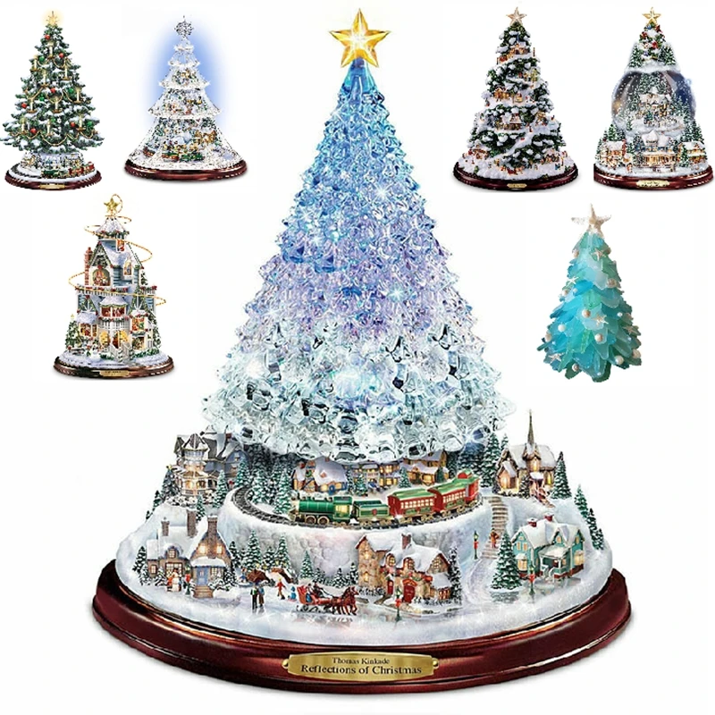 Рождественская Хрустальная елка, вращающаяся скульптура деда мороза...