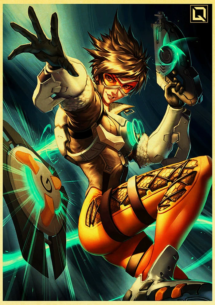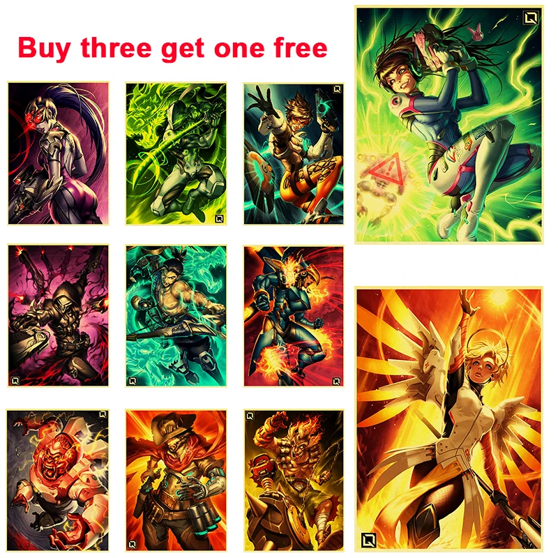 Купите три и получите одну игру Overwatch, постеры с персонажами, винтажные коричневые бумажные наклейки сделай сам для комнаты, бара, кафе, арт-деко, настенные картины