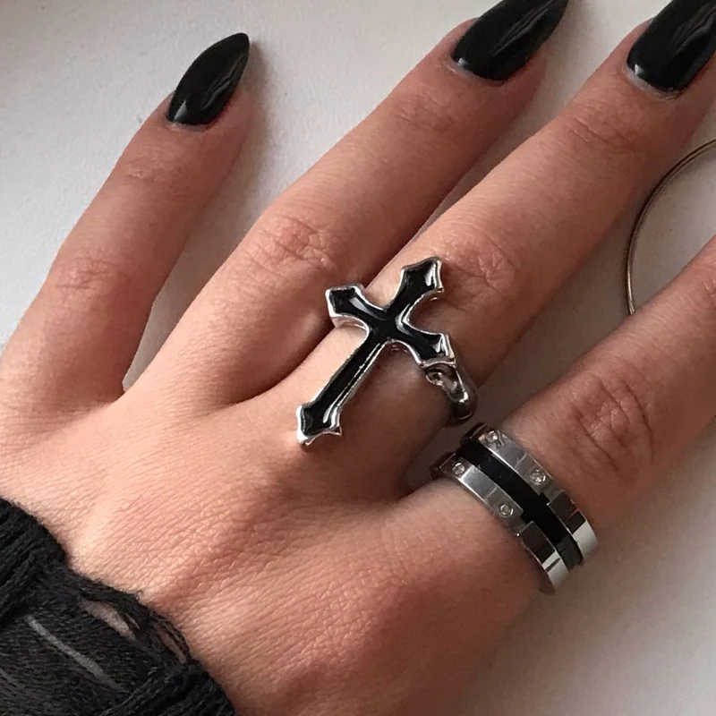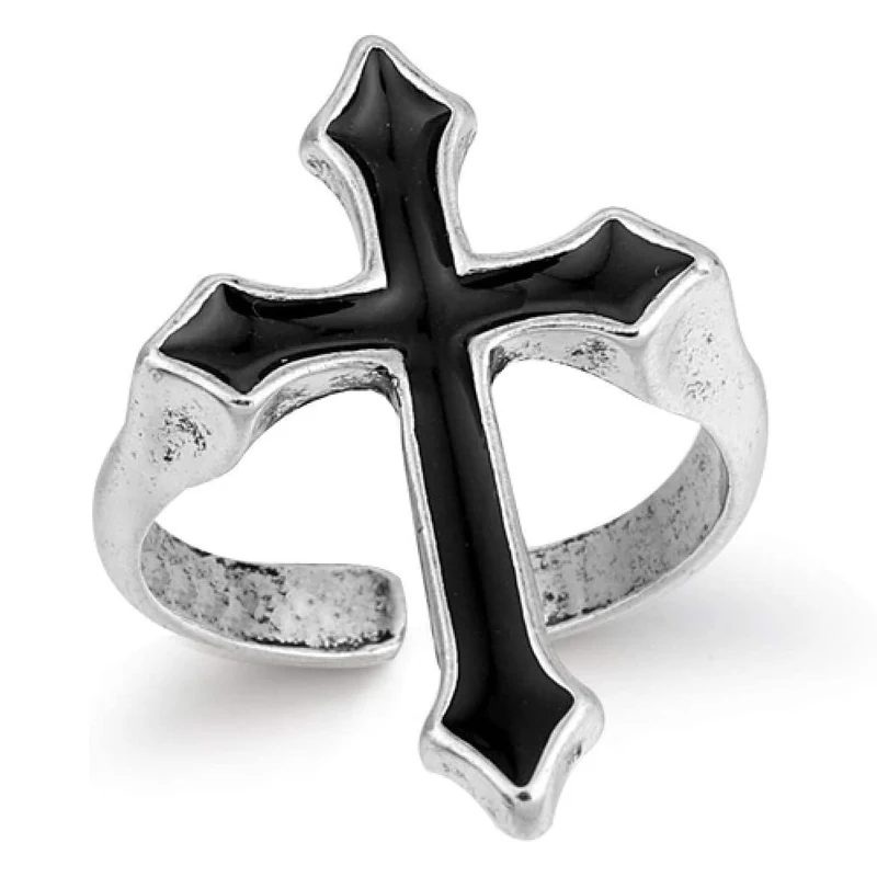 Готическое винтажное черное большое открытое кольцо с крестом для женщин и мужчин, ювелирные изделия для вечеринок, модное готическое металлическое цветное кольцо на палец