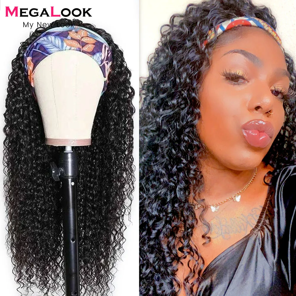 Парик из парик с головной повязкой натуральных кудрявых волос, без клея, без геля, бразильские, кудрявые, для женщин, полностью машинное изготовление парика, манекен для шарфа парика